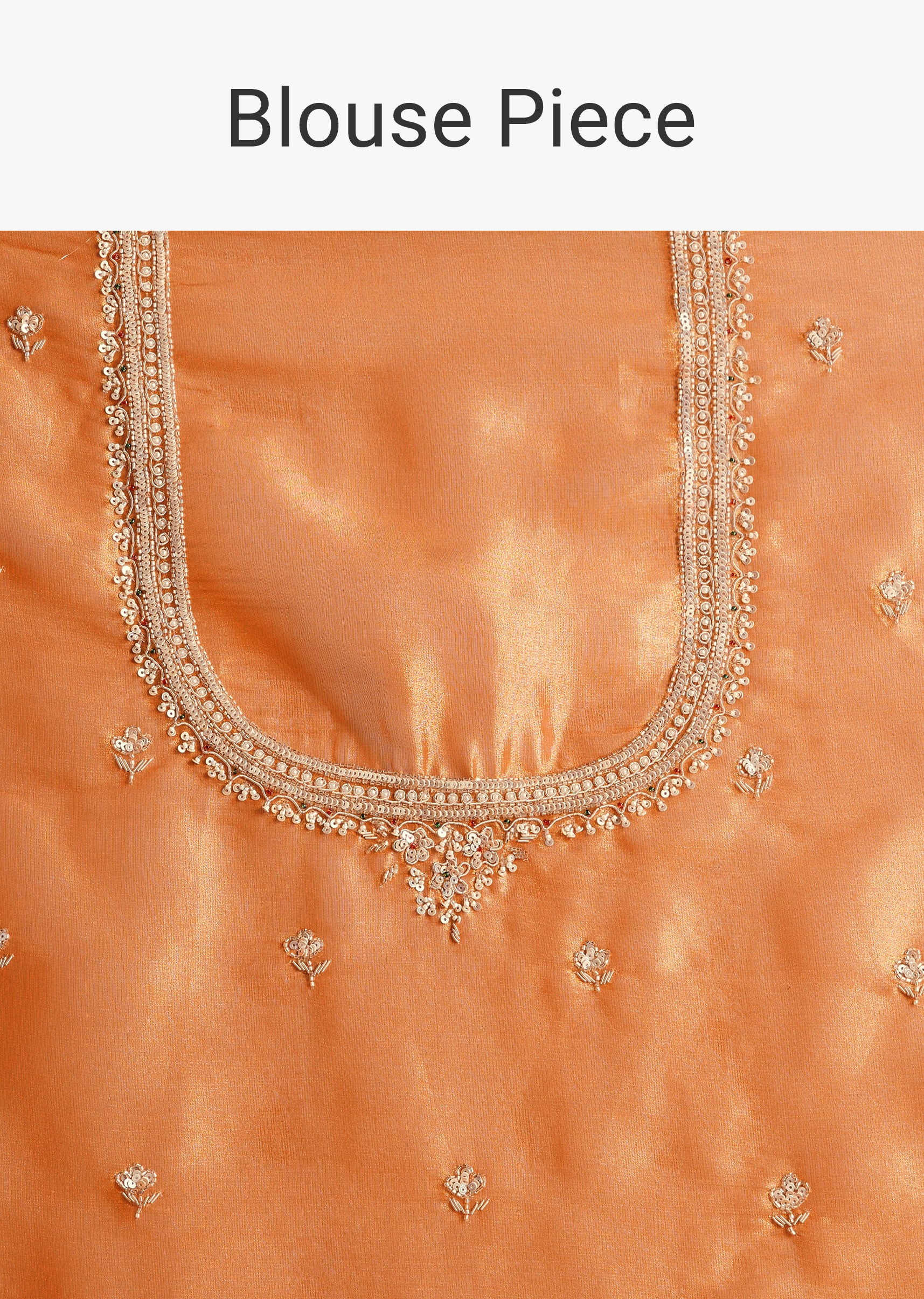 Deep tones stand out instantly, and this rust orange silk embroidered saree does so with ease. The scallop border and blouse fabric are brought to life with cutdana, sequins, beads... More Product Details