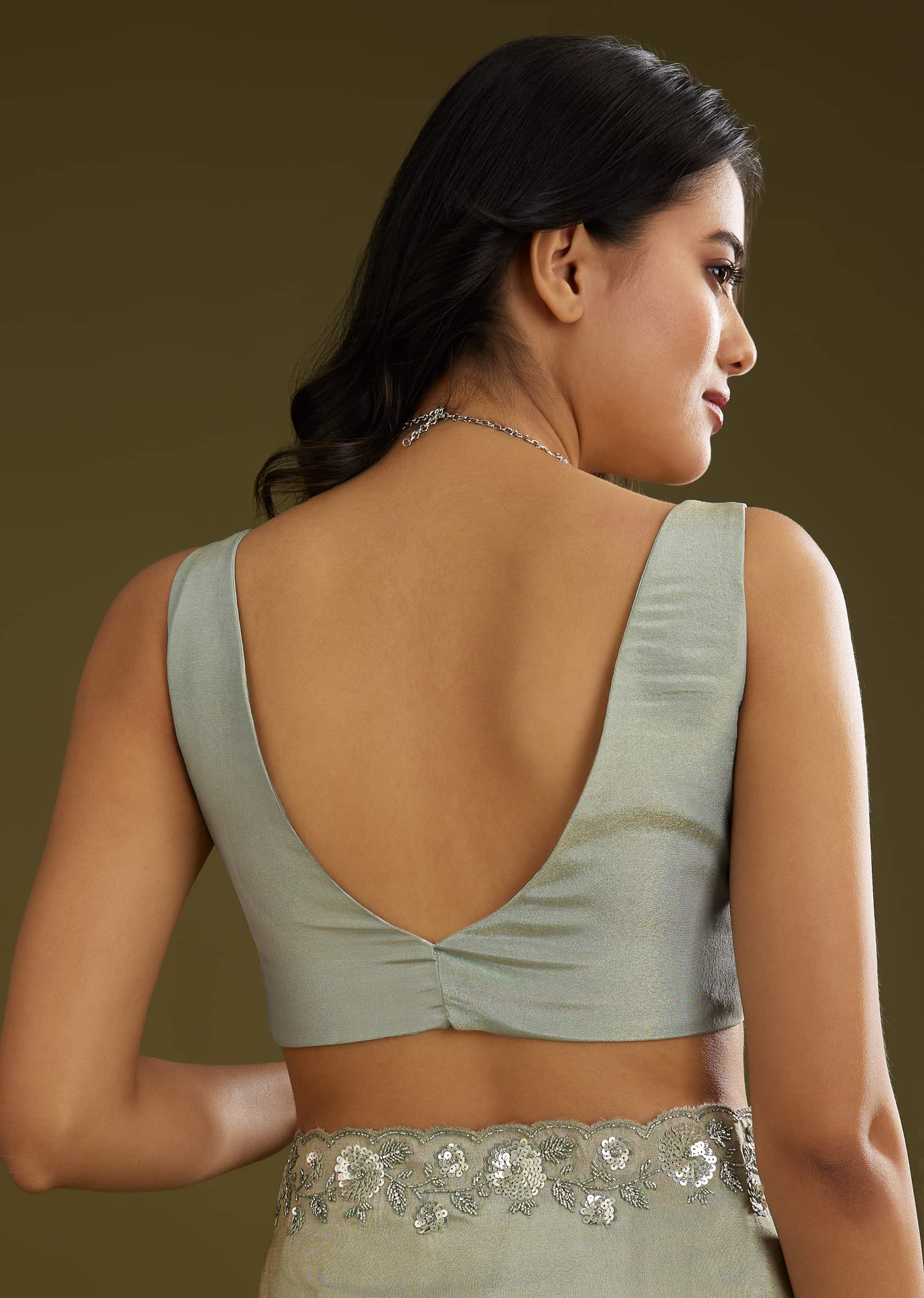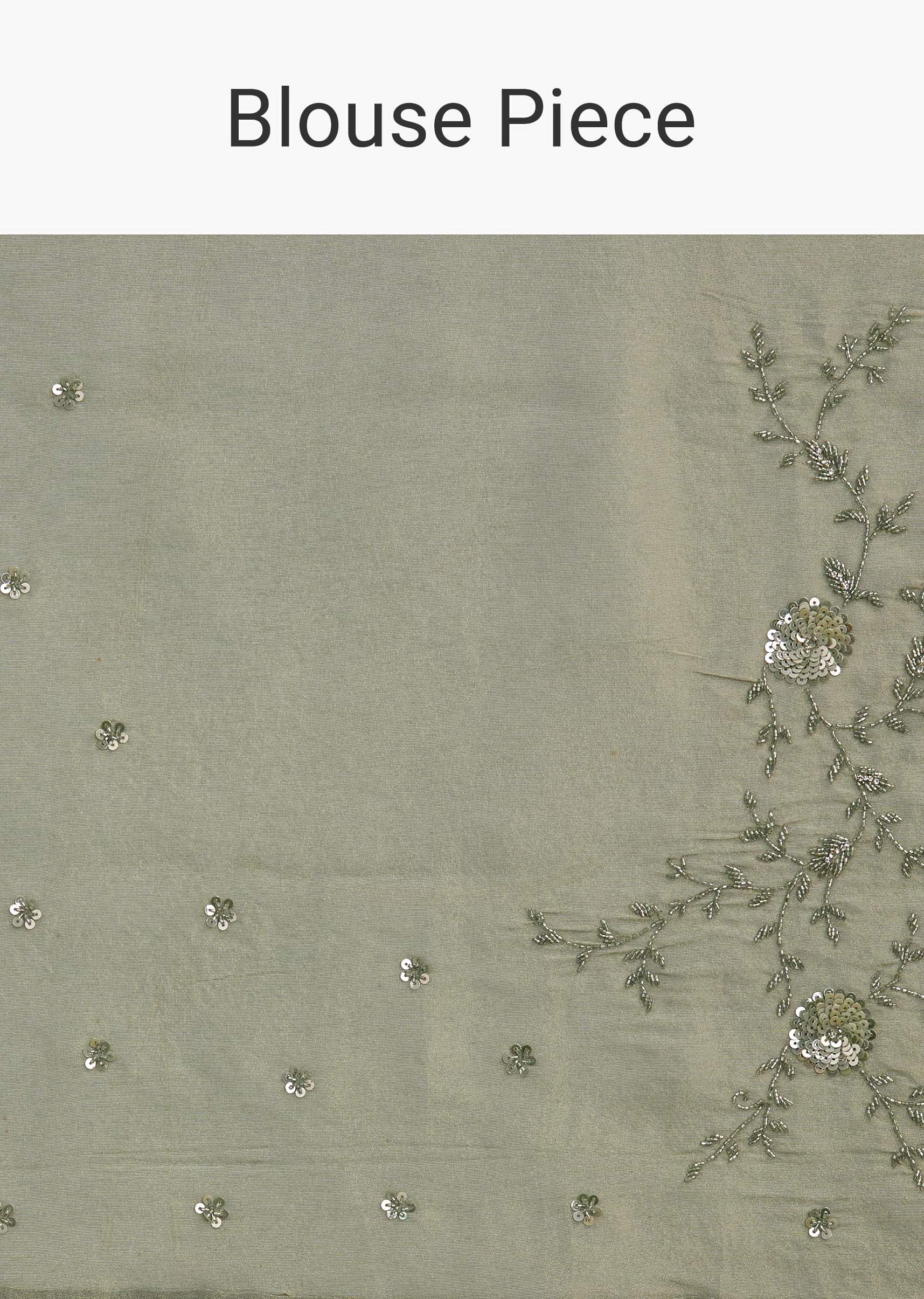 Sage Green Tissue Floral Embroidered Saree With Cutdana And Sequin Work