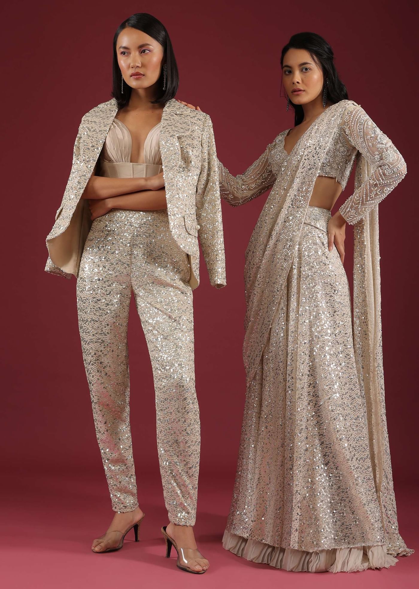Sandshell Cream Palazzo Saree In Sequins Embroidery