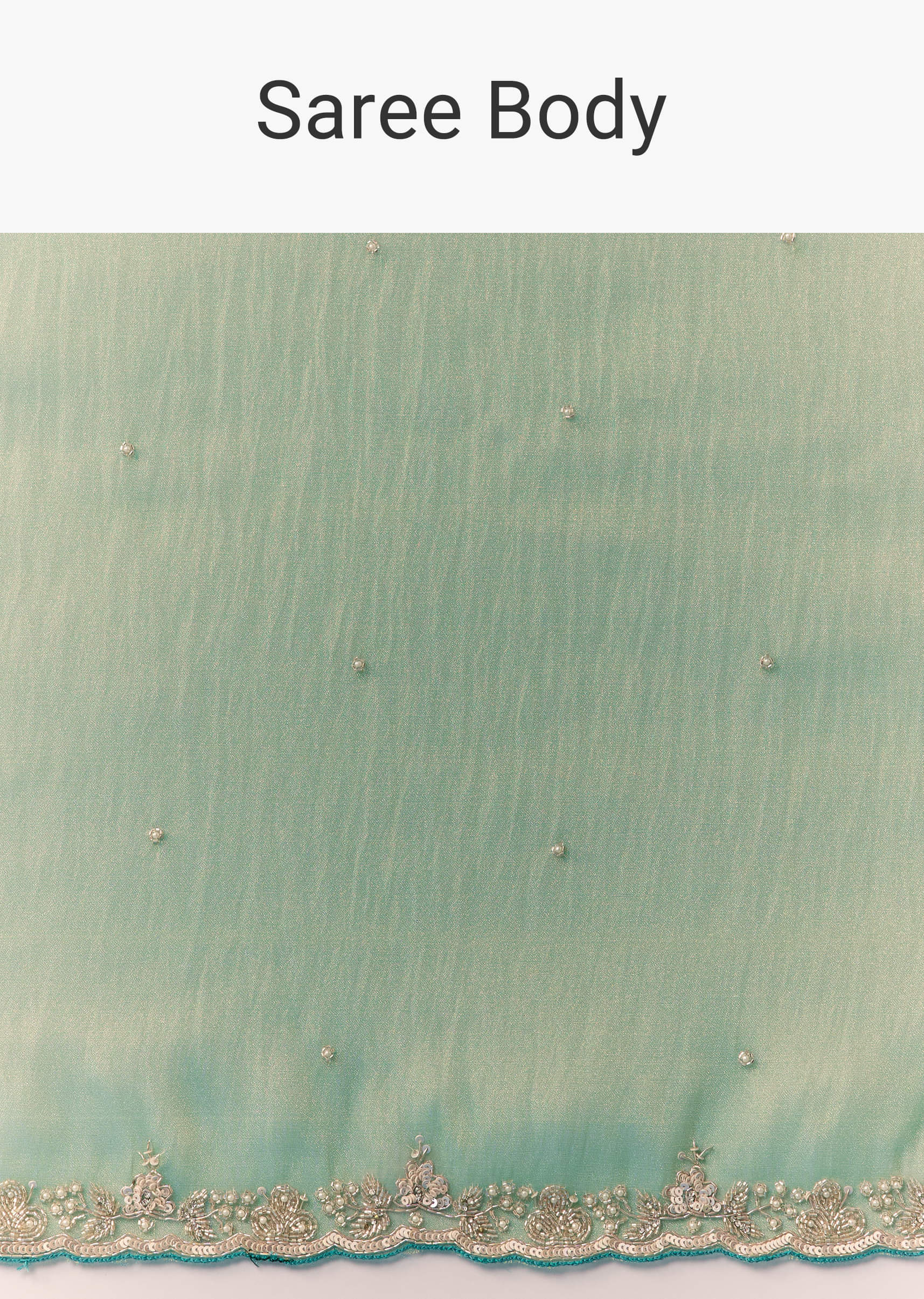 Sea Green Embroidered Tissue Saree with Unstitched Blouse