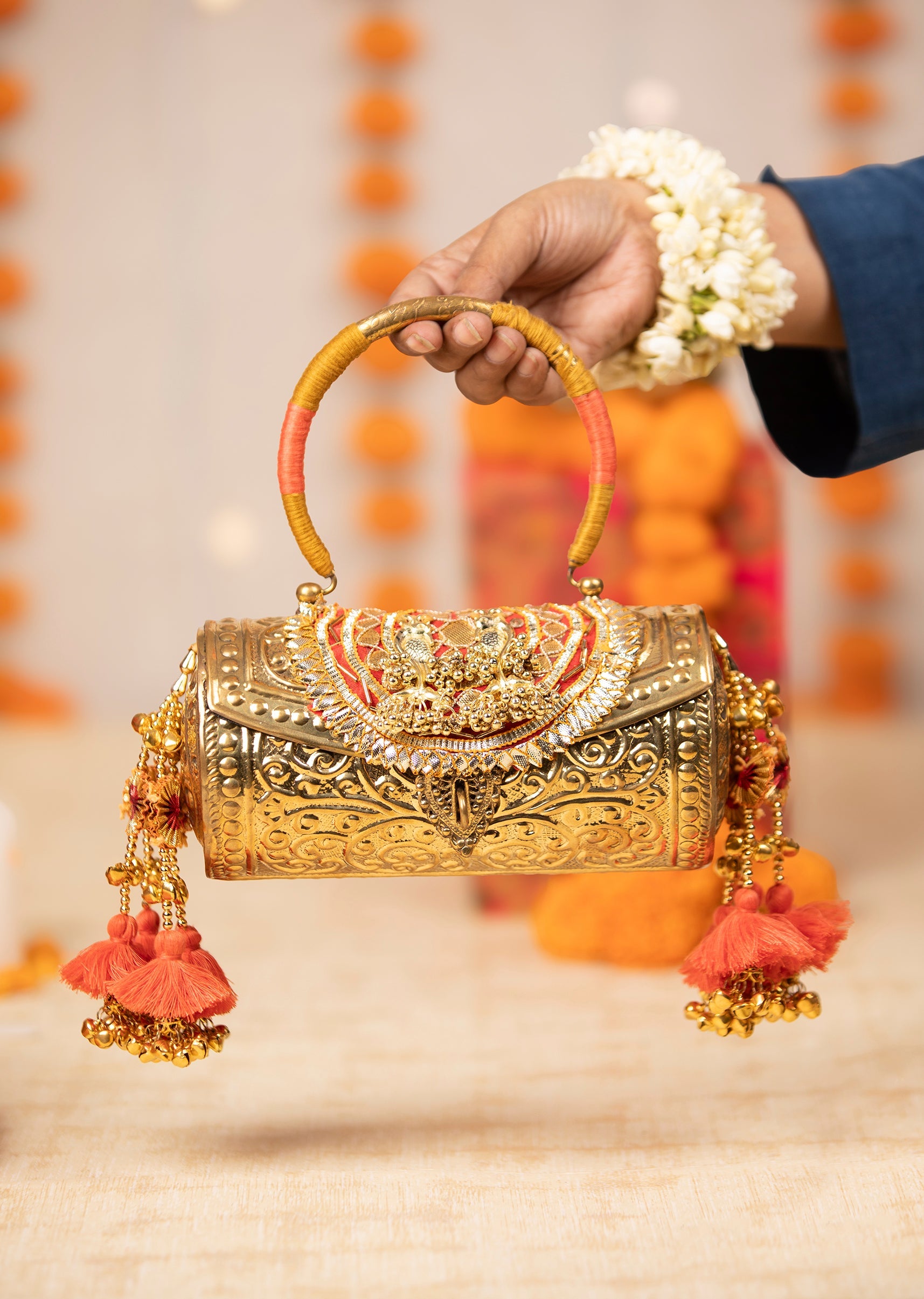 Bring a touch of luxe drama to your look with this gold embossed metal bag, highlighted by a standout 3D floral accent. The shimmering surface and elegant tassels add movement and glamour, making it ideal for weddings, cocktail nights, and festive celebrations. Compact yet impactful, it’s the perfect accessory for anyone who loves a bold, sophisticated finish. Awarded as the Most Trusted Brand, we're delivering styles you love, just as promised.