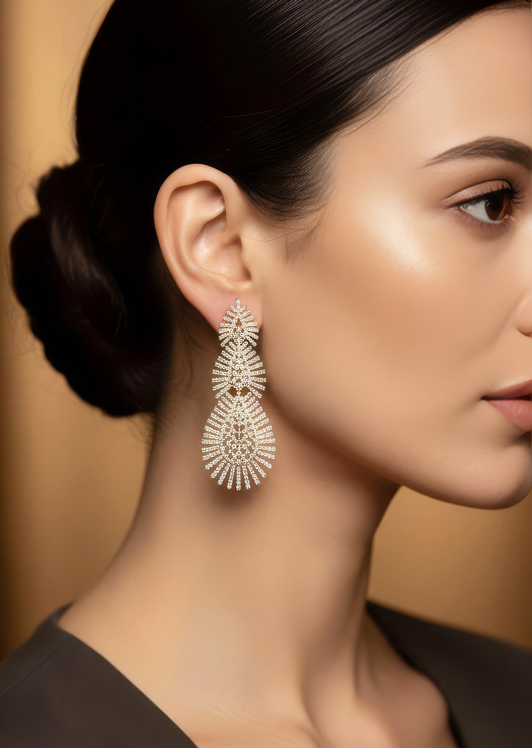 A graceful blend of silver and white tones gives these CZ diamond look earrings a clean, luminous elegance. Crafted in durable rhodium plated brass with an anti tarnish finish, they reflect light beautifully while maintaining a refined, lightweight feel. Ideal for weddings, receptions, and elegant evening affairs where understated sparkle stands out.