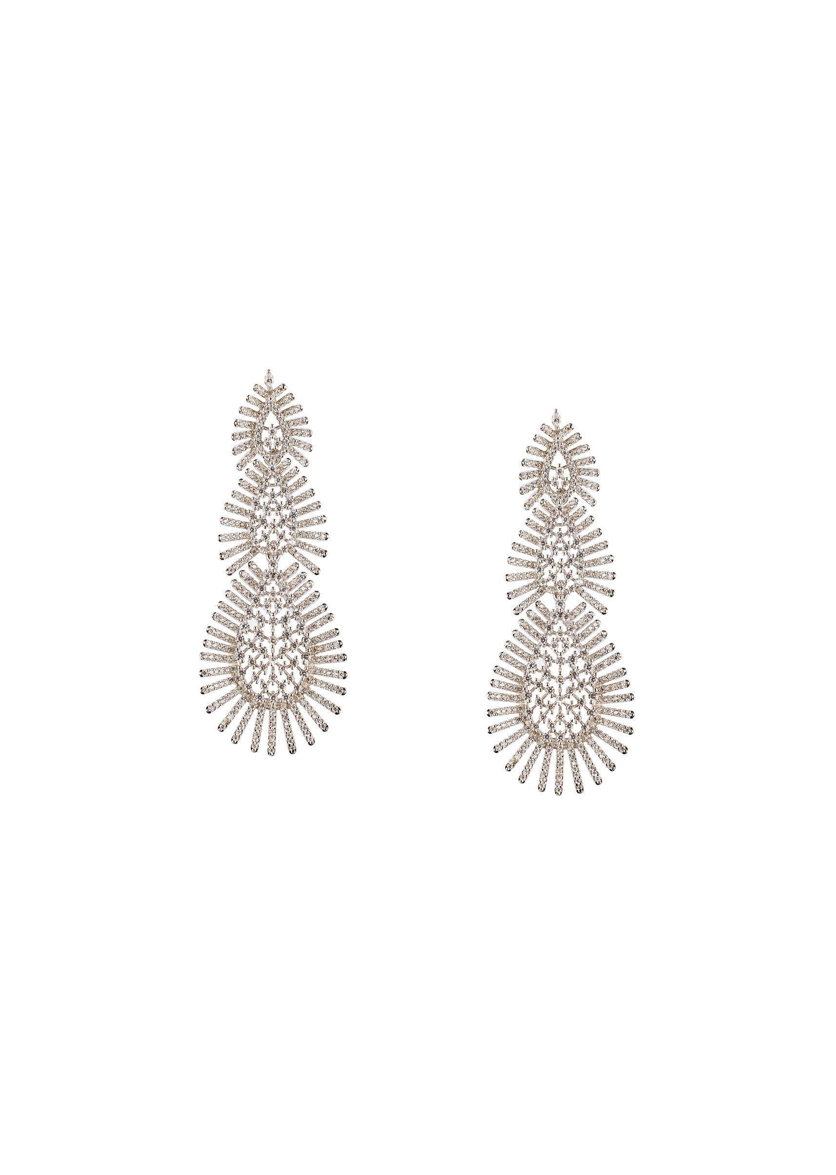 Silver Anti Tarnish CZ Diamond Rhodium Plated Long Earrings