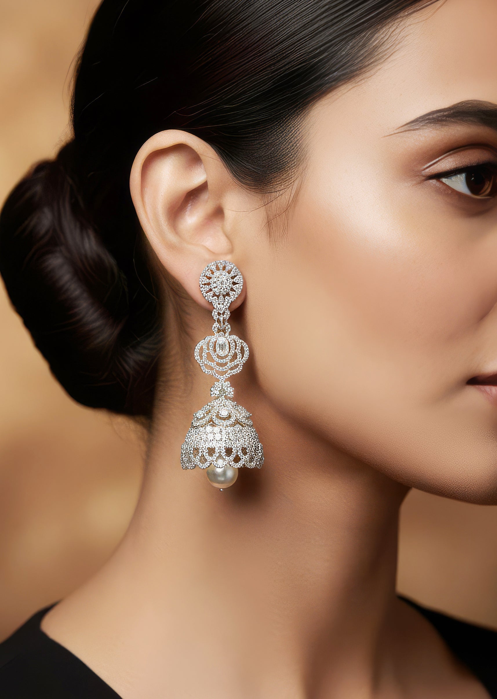 Pair these earrings with a silk saree, embroidered kurta set, or an anarkali to highlight the classic jhumka form and pearl detailing.