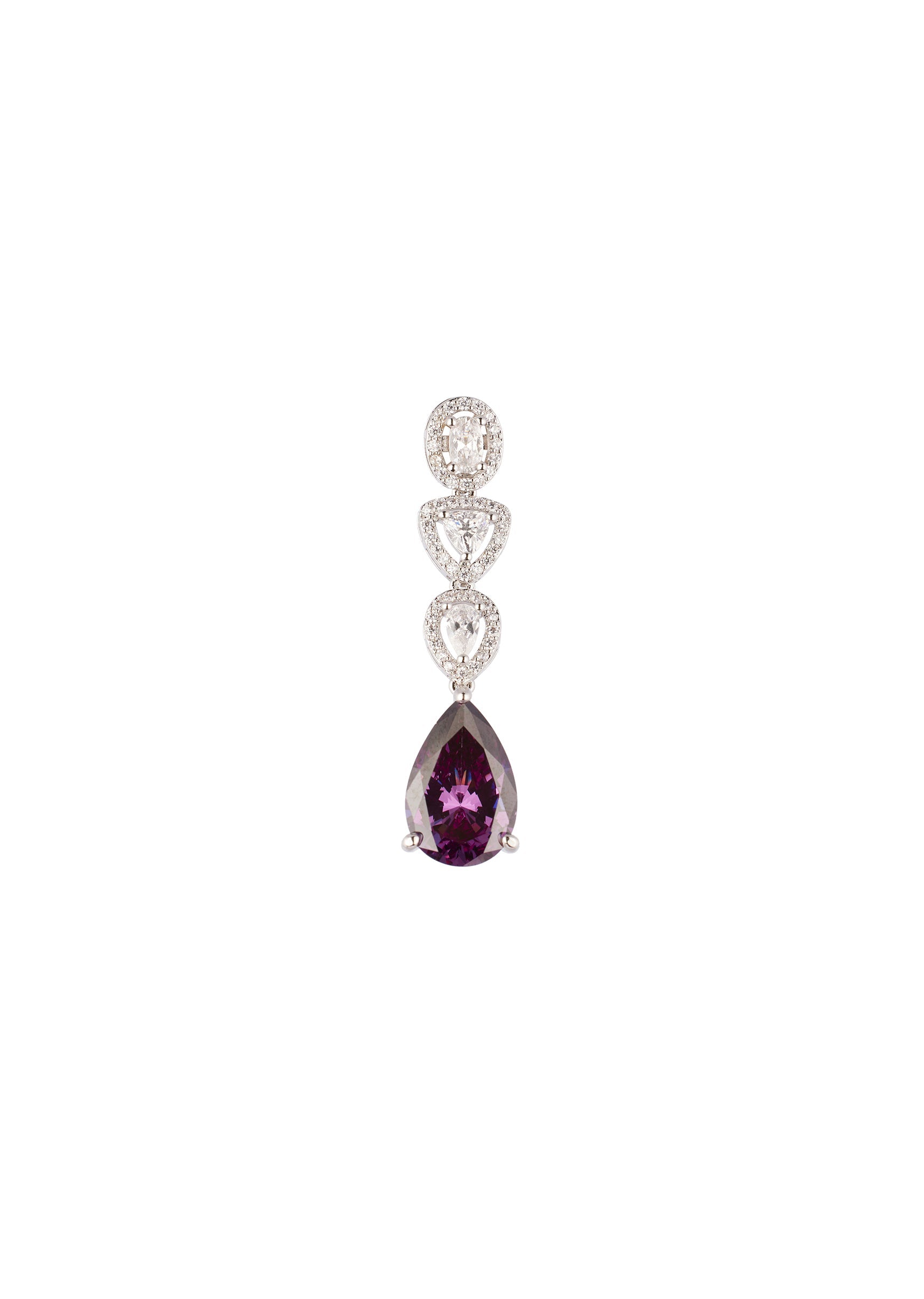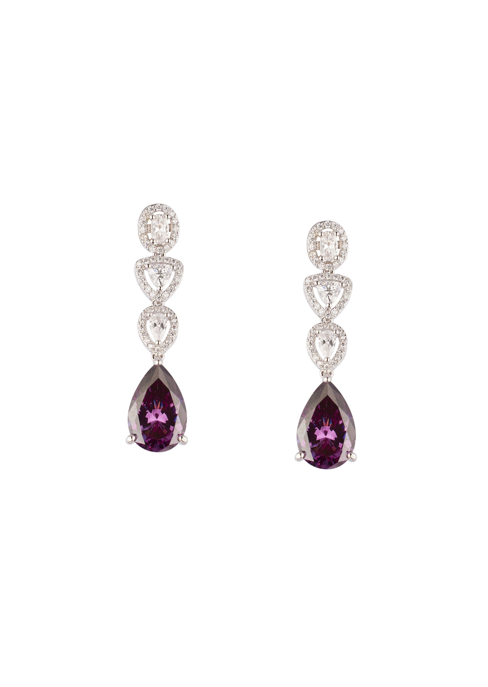 Silver Finish Earrings In Mix Metal With Modern Pendant Style And Purple Simulated Stone Accents
