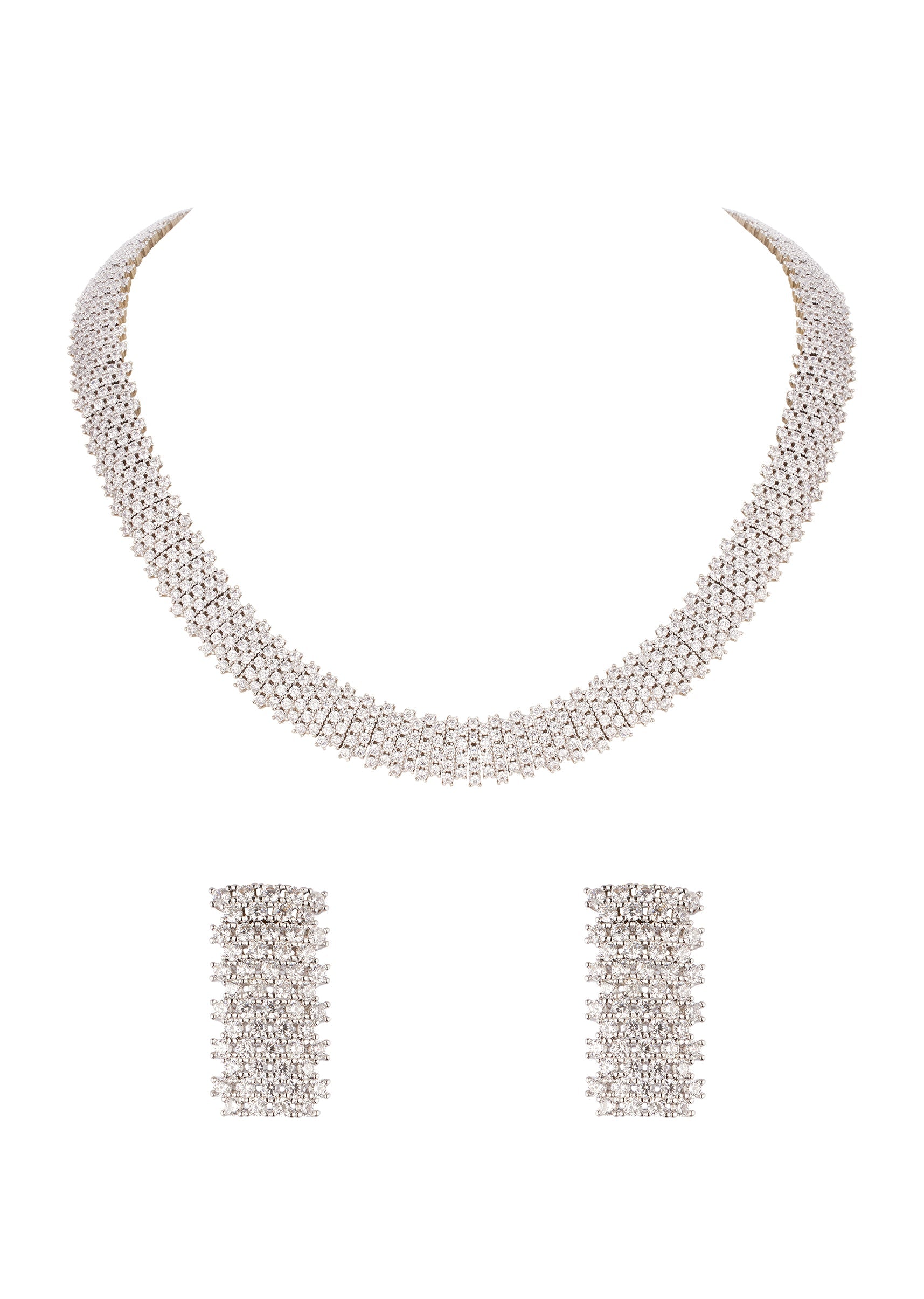 Silver Finish Necklace Set In Mix Metal With Contemporary Mesh Style And White Cubic Zirconia Accents