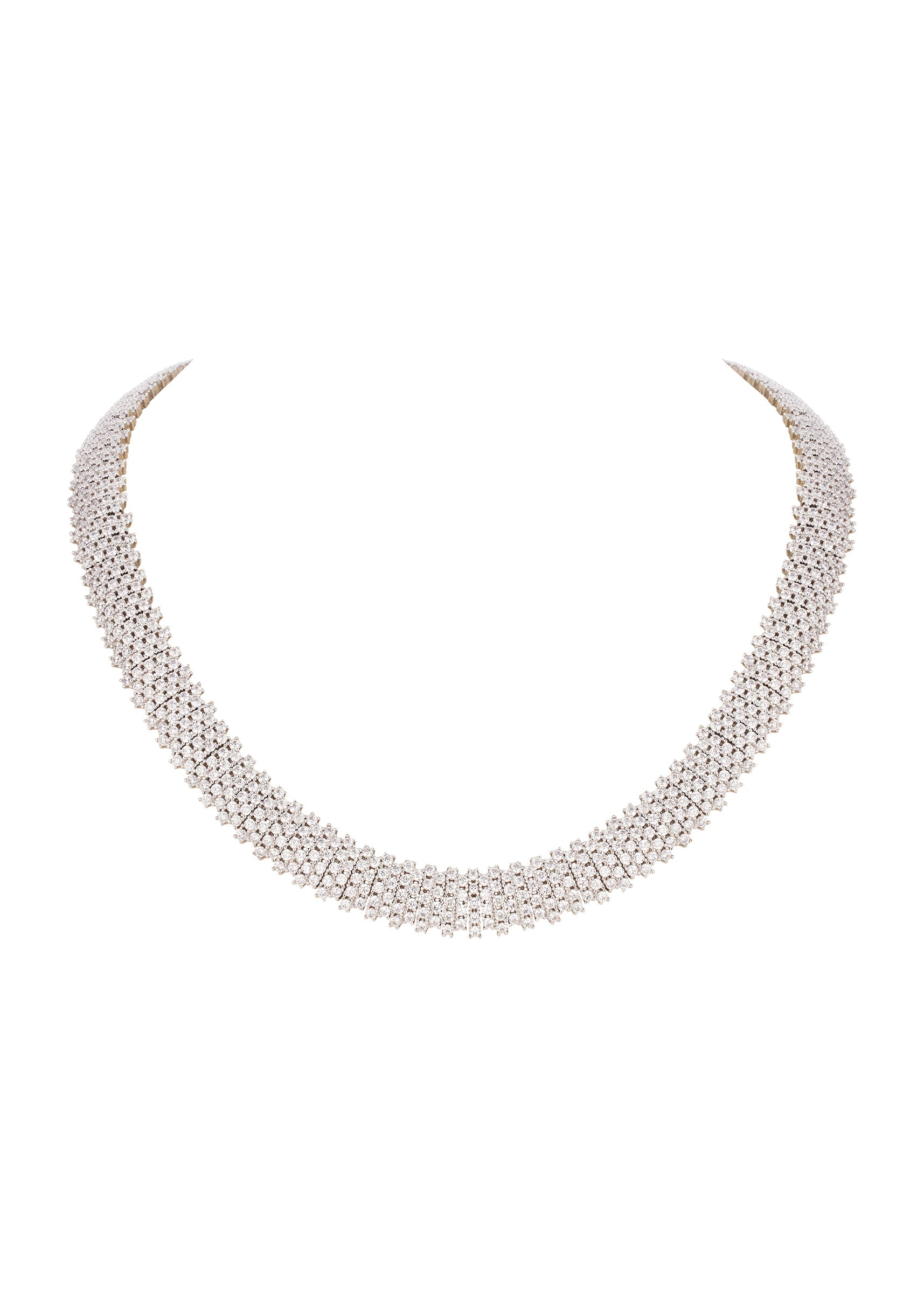Pair this necklace set with a sleek saree, evening gown, or cocktail dress to highlight the mesh style and white cubic zirconia accents.