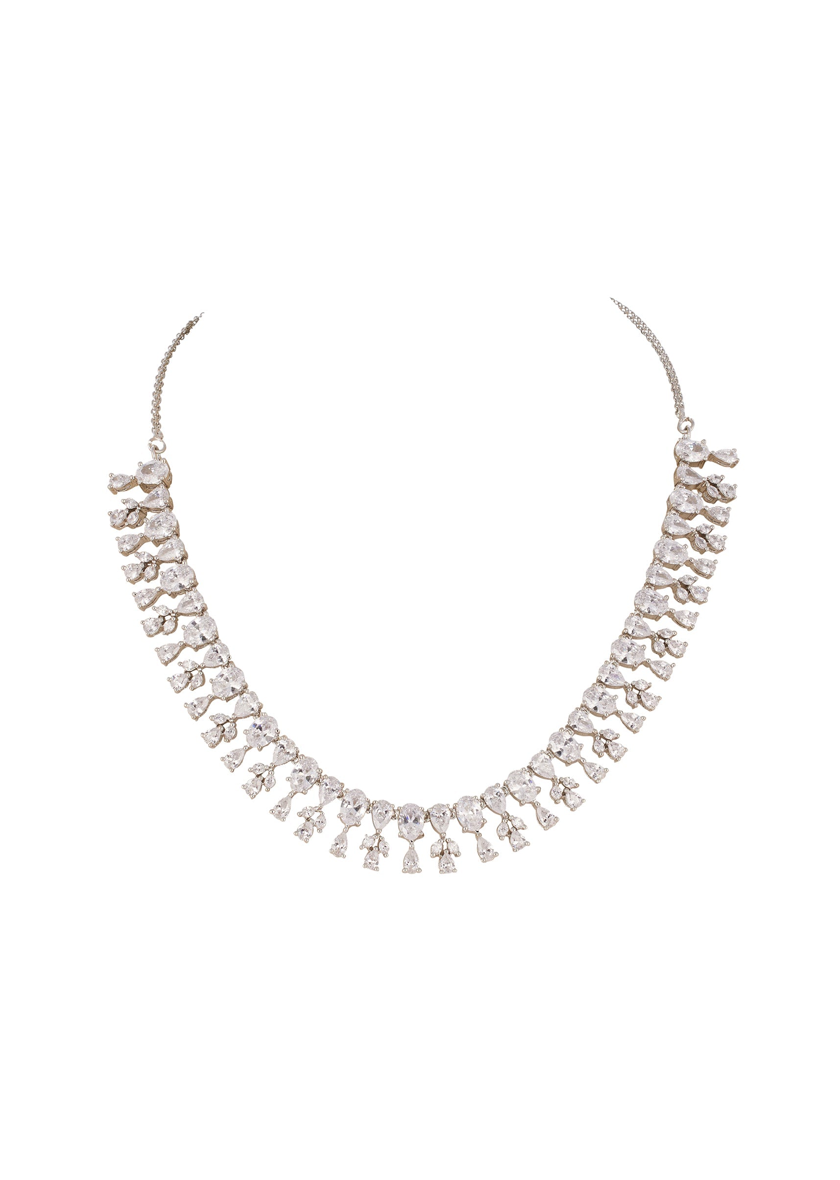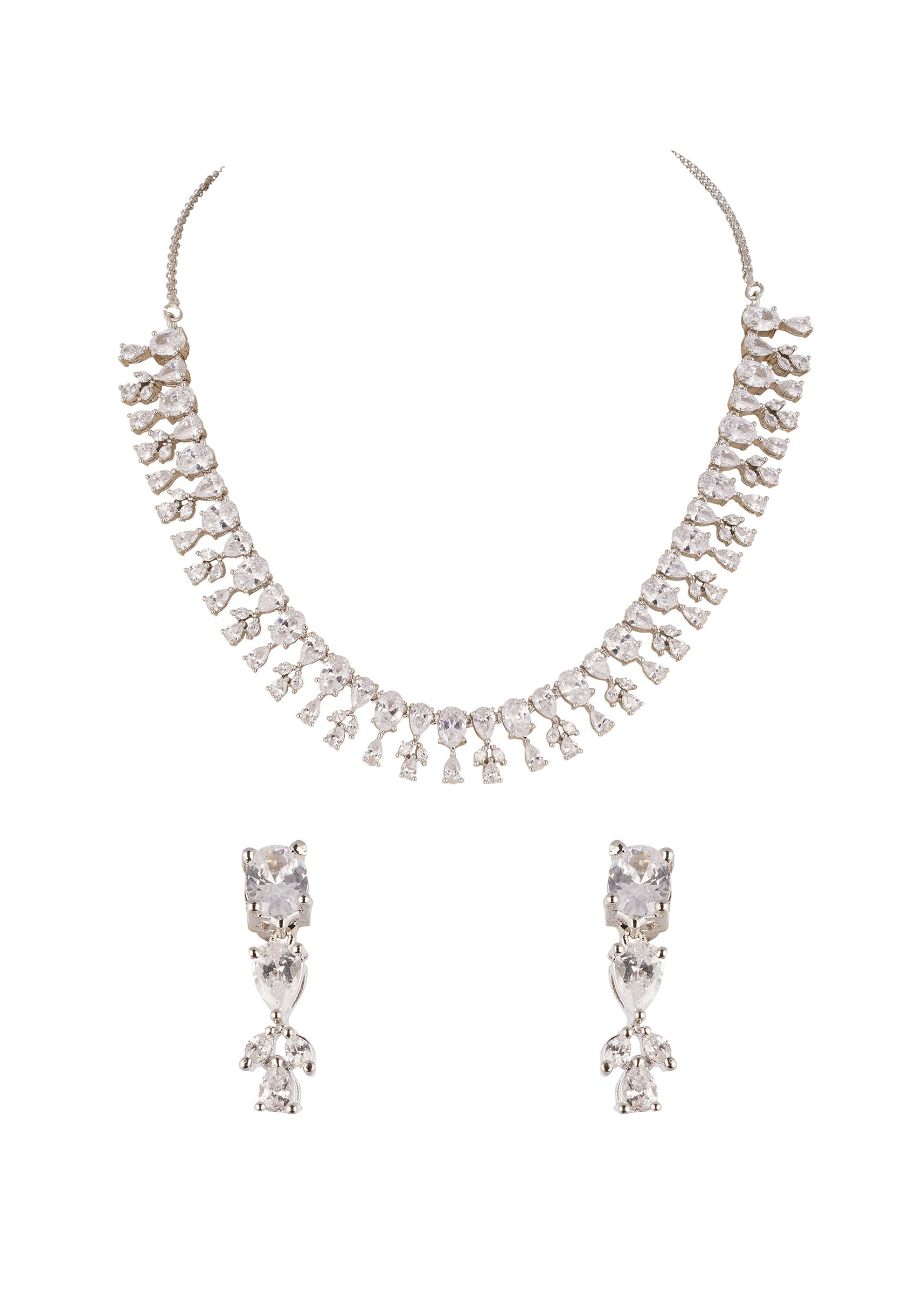 Silver Finish Necklace Set With Modern Fringe Style And Cubic Zirconia Accents
