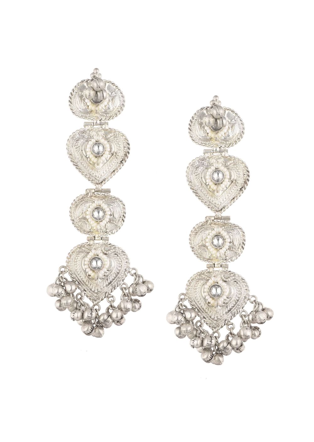 Indulge in opulence with our exquisite silver finish oxidised danglers in fusion style. These stunning danglers are meticulously crafted to perfection.EVENT - Ideal for day and evening weddings sangeet and engagement parties.Store in a dust bag. Keep away from moisture perfume alcohol and harsh chemicals. Spot clean only. Keep away from sharp objects. Actual color may slightly vary due to photographic lighting sources and device screen settings. Awarded as the Most Trusted Brand, we're delivering styles you love, just as promised.