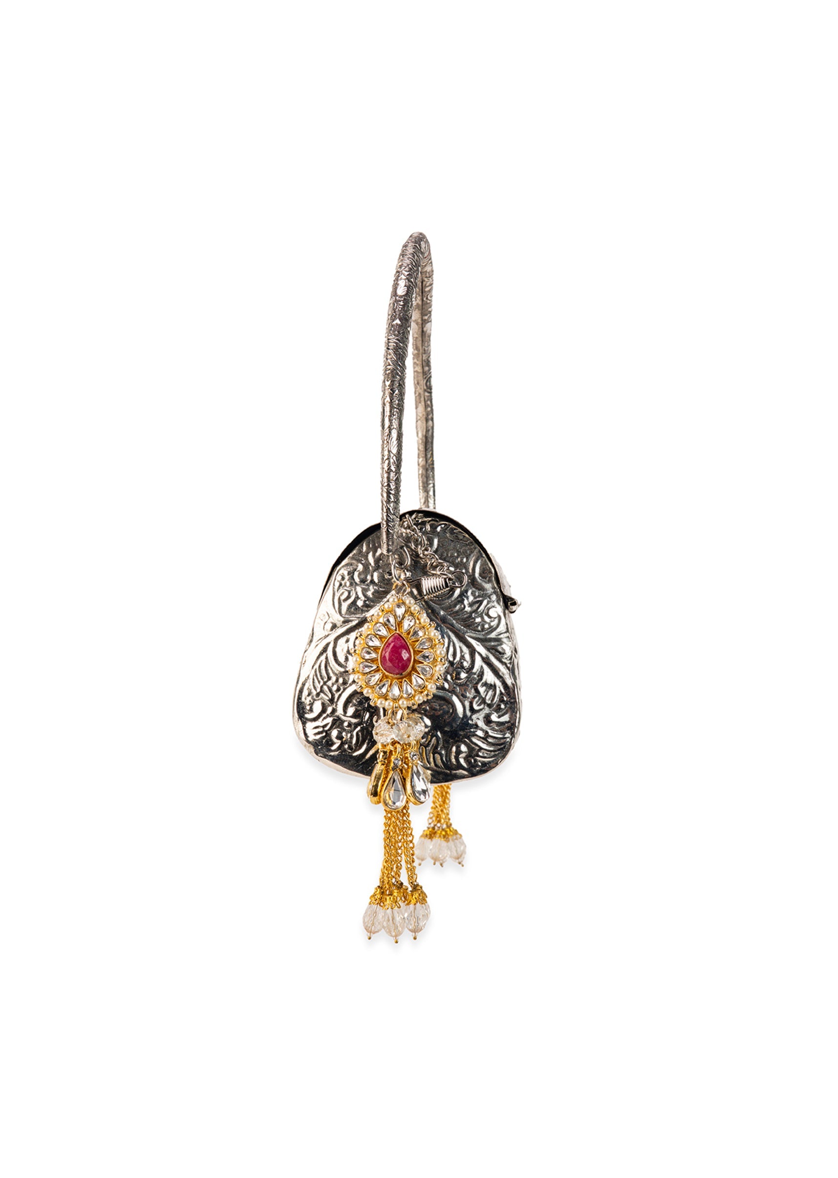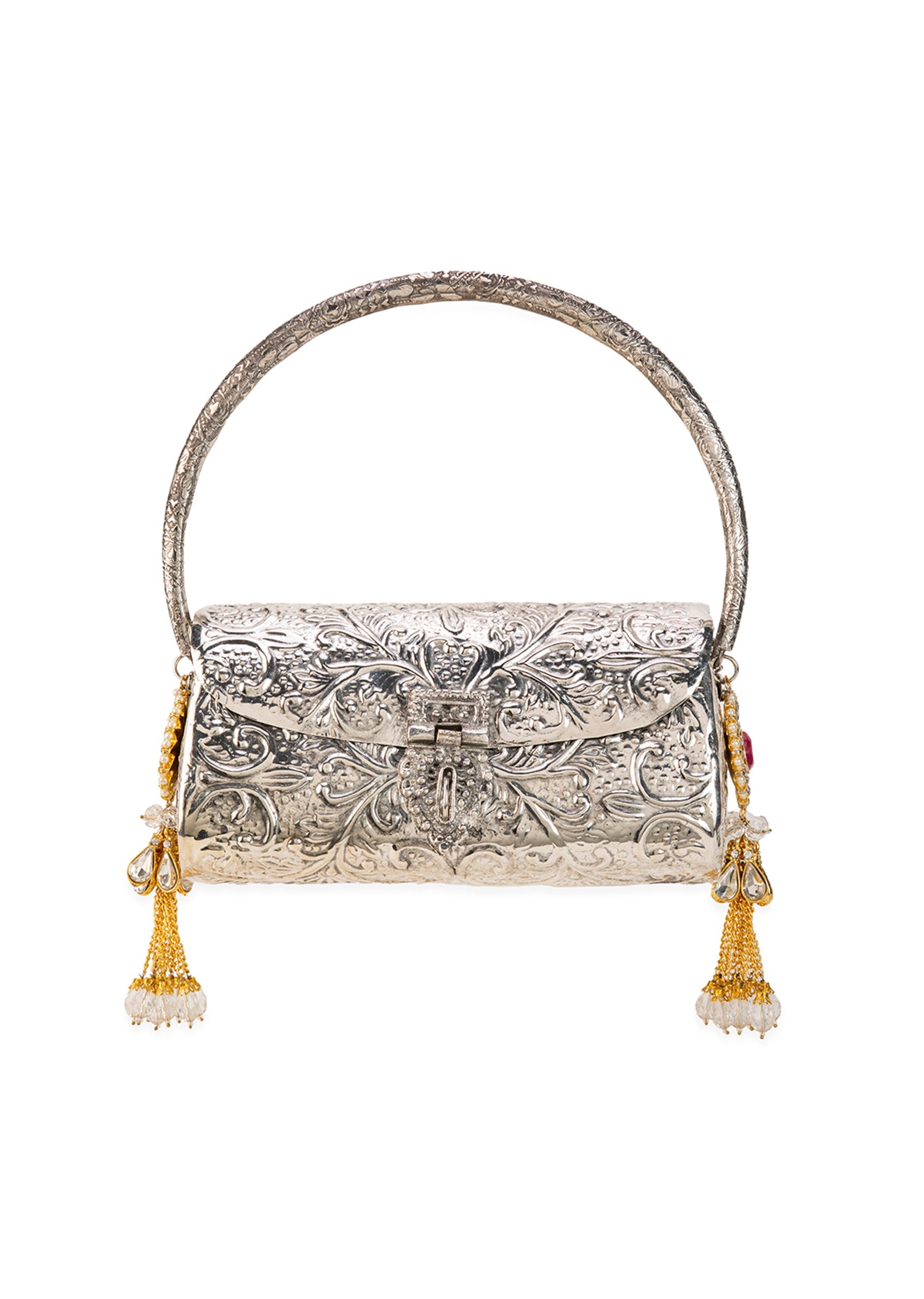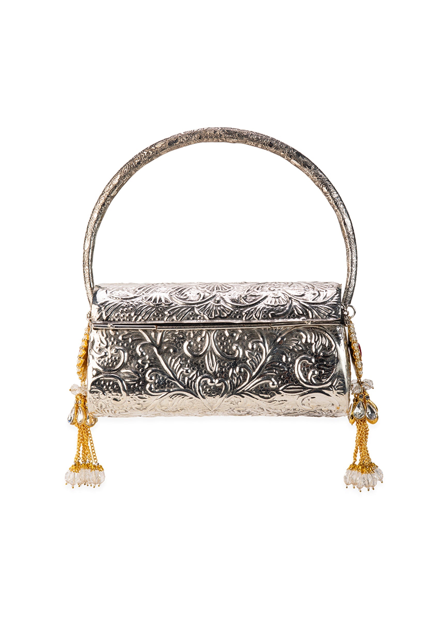 Silver Floral Embossed Textured Metal Bag