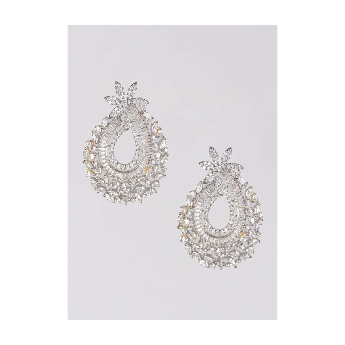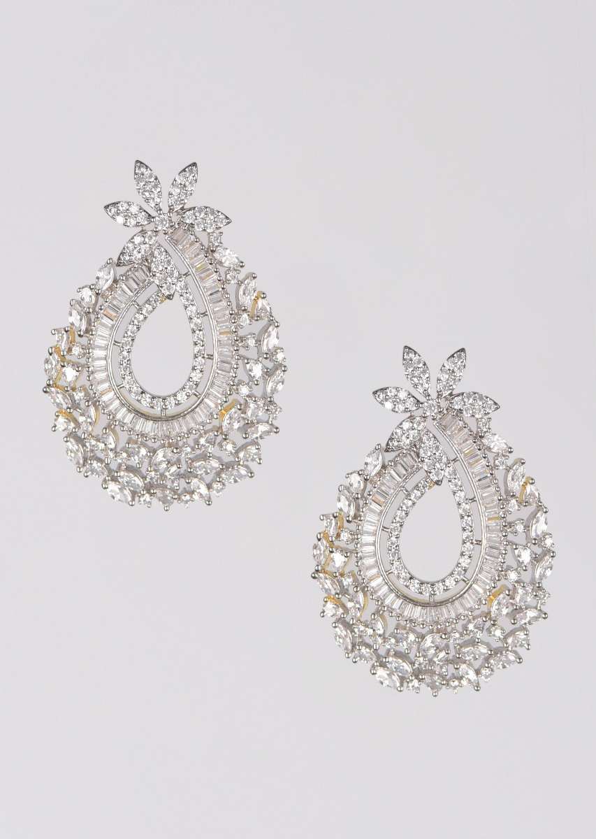 Silver Plated Studs In Drop Shape With Crystals Stones And Bugle Beads Online - Kalki Fashion