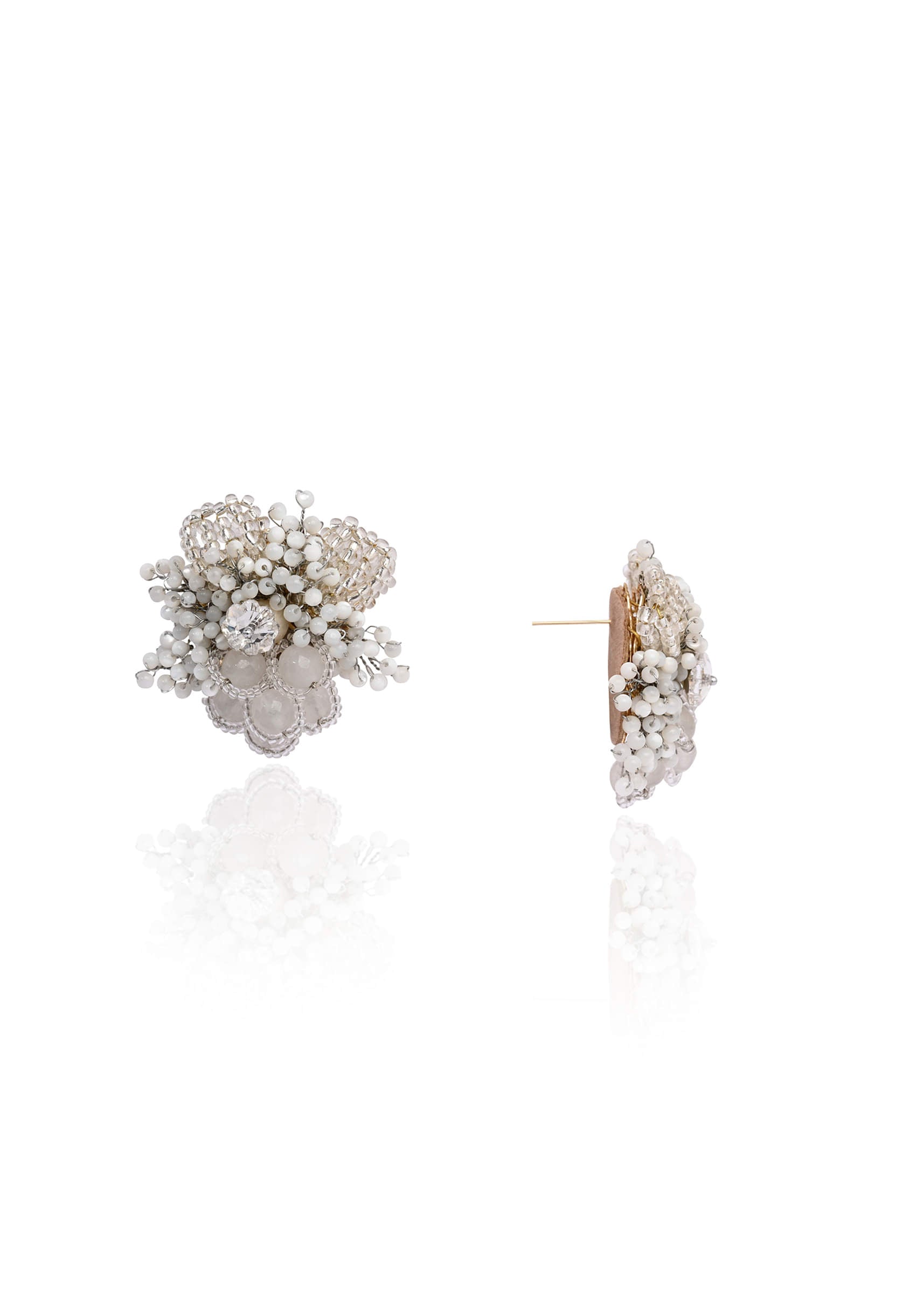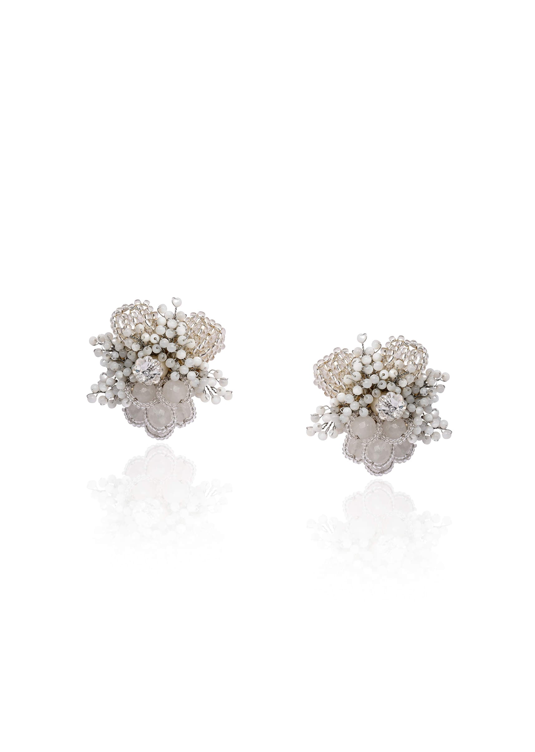 Silver Plated White Floral Stone Earrings