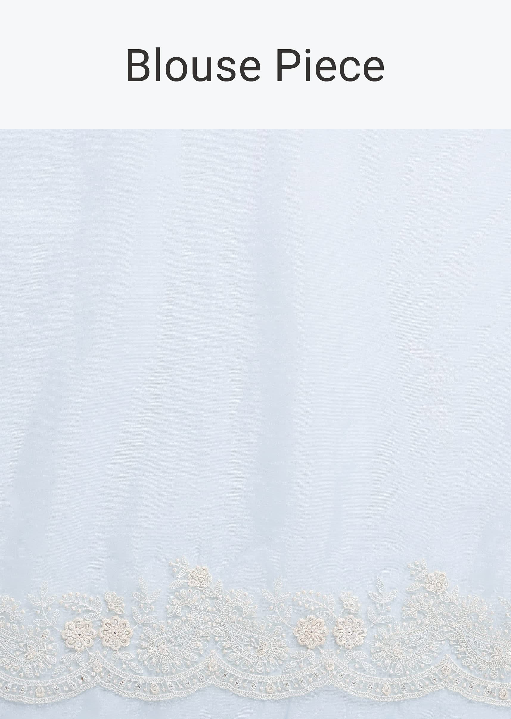Sky Blue Chikankari Saree In Organza Silk With Floral Jaal Detail And Unstitched Blouse Fabric