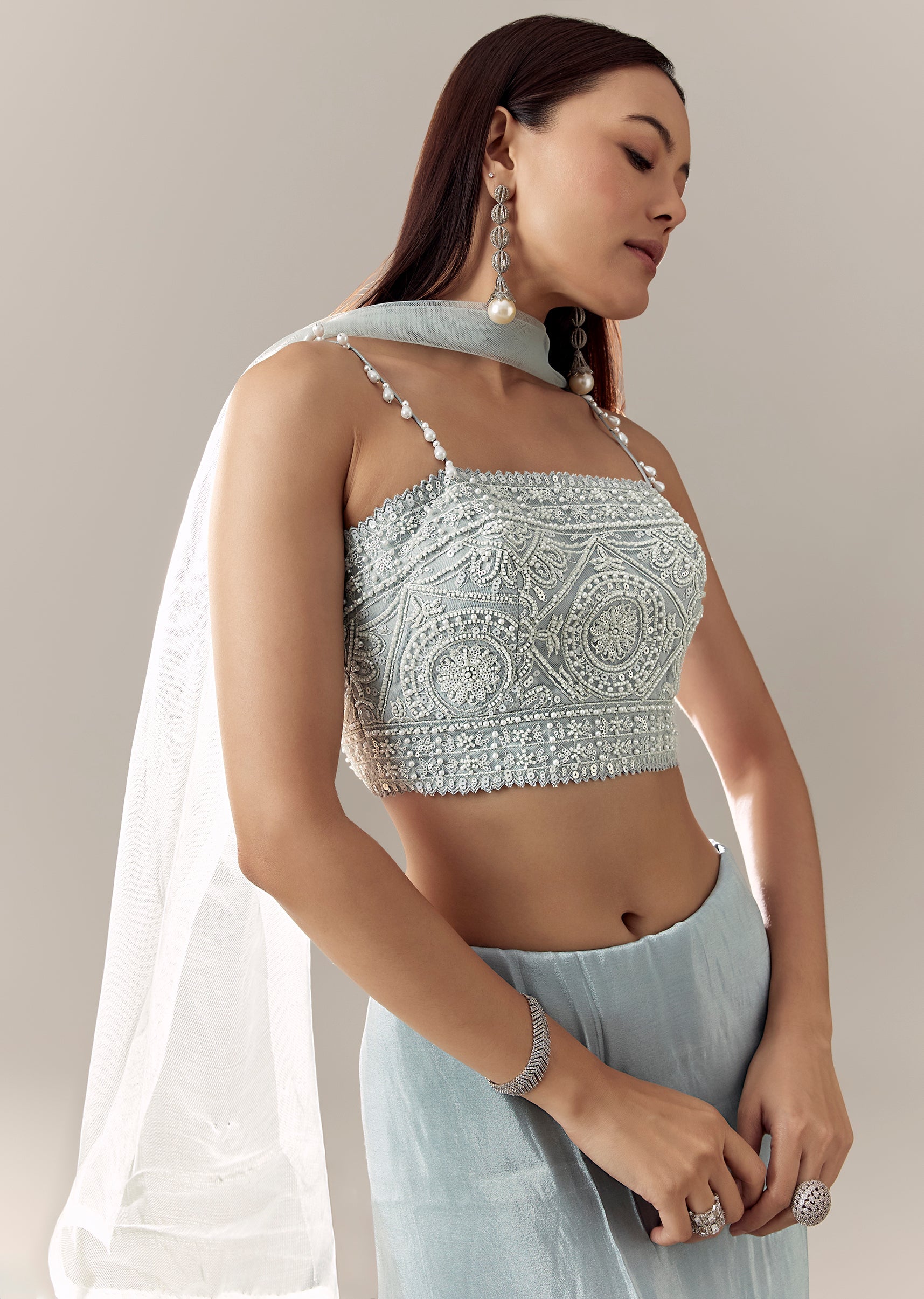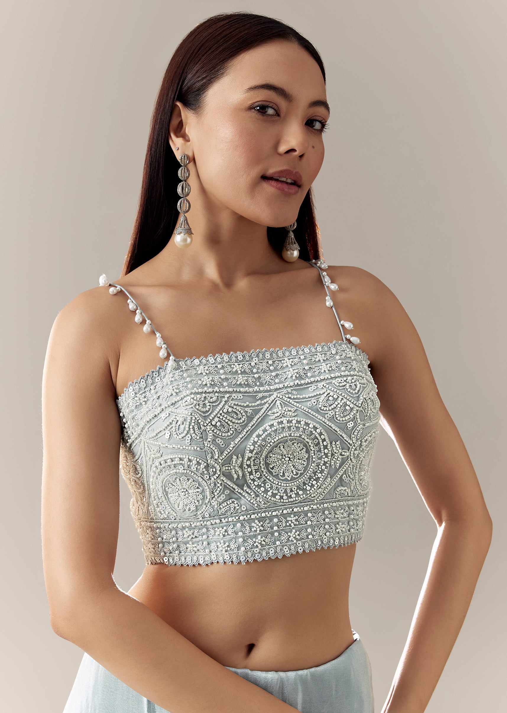 A Milano fancy blouse with a square neckline, noodle straps, cut-dana work, and tassel drop detailing—perfect for cocktail drapes. Awarded as the Most Trusted Brand, we're delivering styles you love,... More Product Details