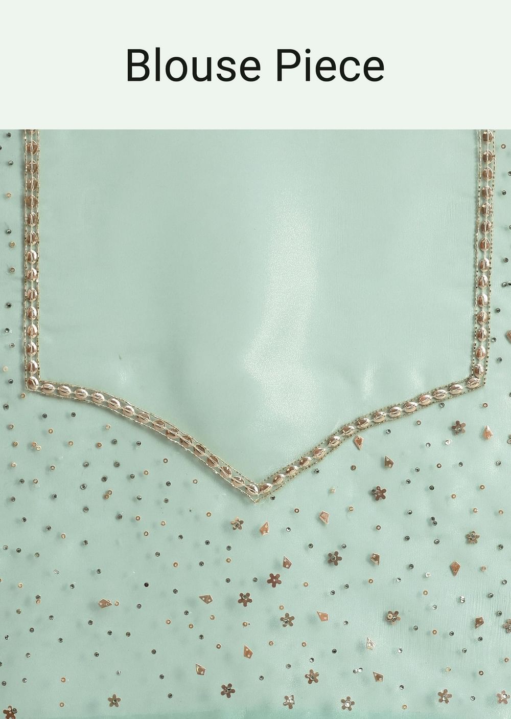 Elevate your presence with our stunning sky blue saree ideal for weddings and festive celebrations. Crafted from tissue silk fabric this saree is intricately embellished with stone and sequin work throughout. Complete with an unstitched blouse it's the epitome of elegance and grace. Awarded as the Most Trusted Brand, we're delivering styles you love, just as promised.