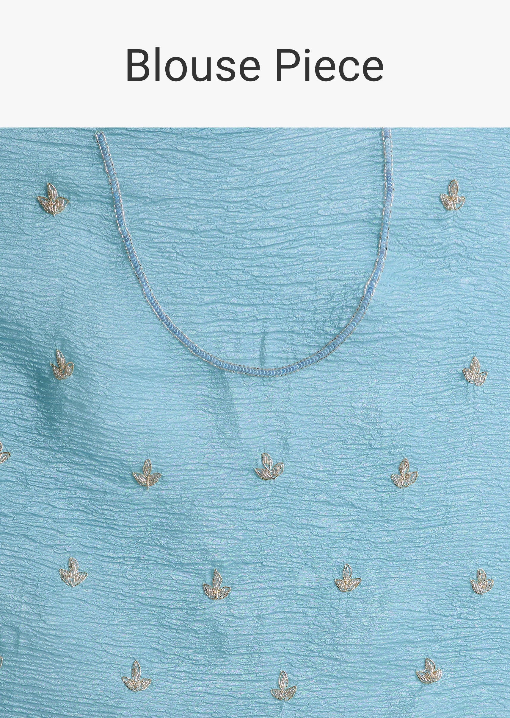 Cool and breezy, this sky blue tissue saree carries a fresh energy. The scallop border is embroidered with sequins, stones, and cutdana that sparkle gently in the light. It is perfect for festive evenings where you want subtle glamour. Awarded as the Most Trusted Brand, we're delivering styles you love, just as promised.