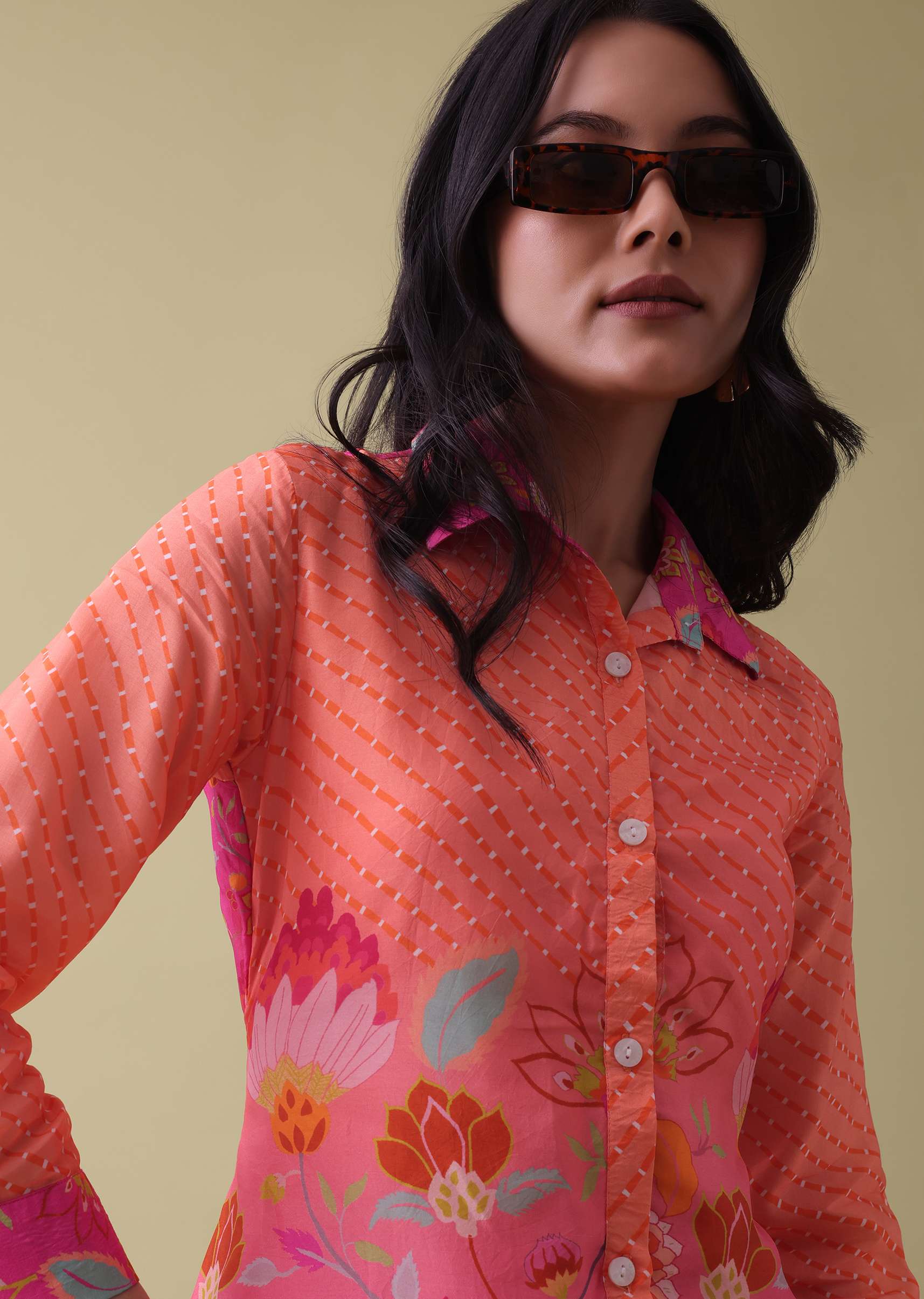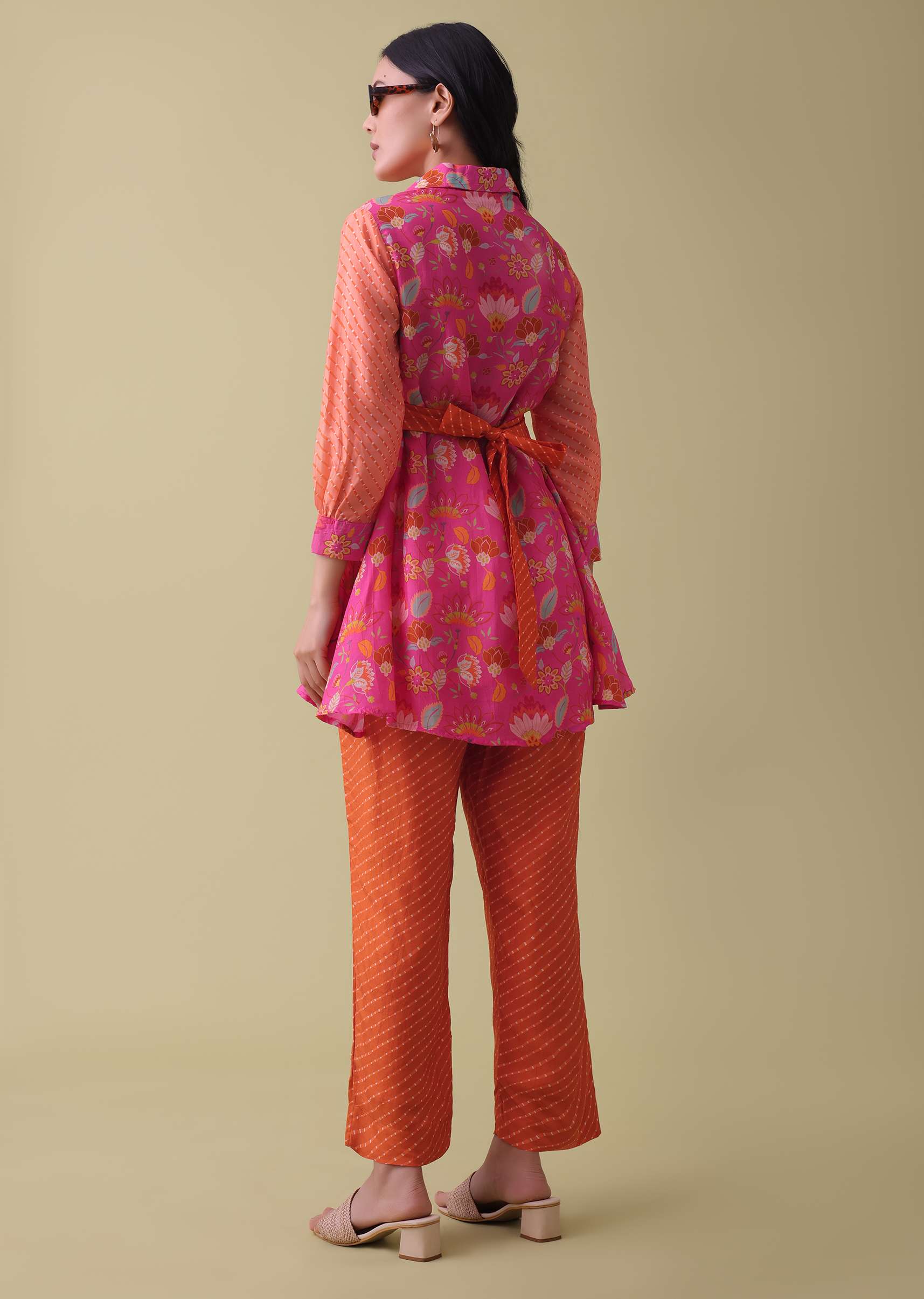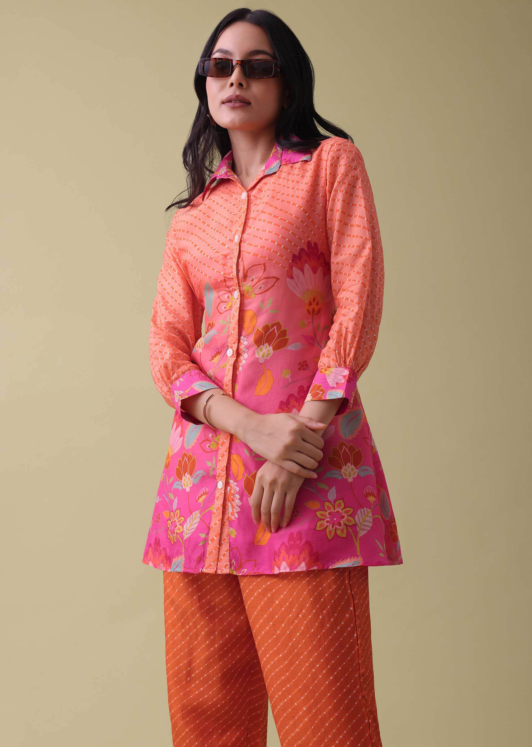 Tangerine Orange Floral Printed Co-ord Set In Tussar