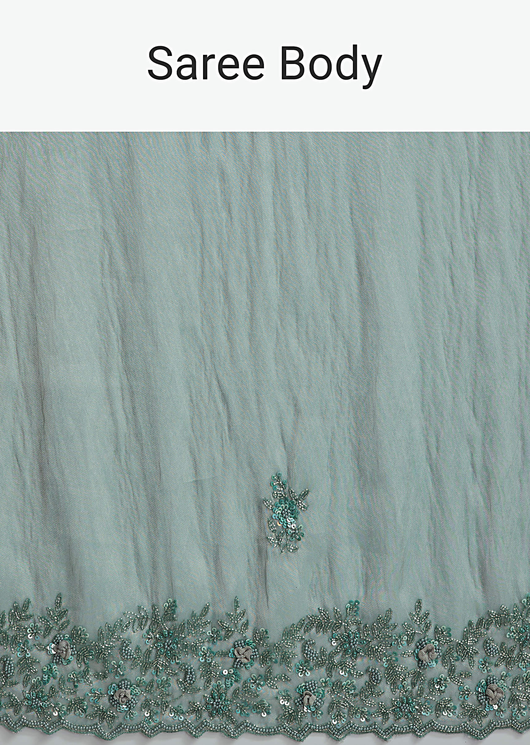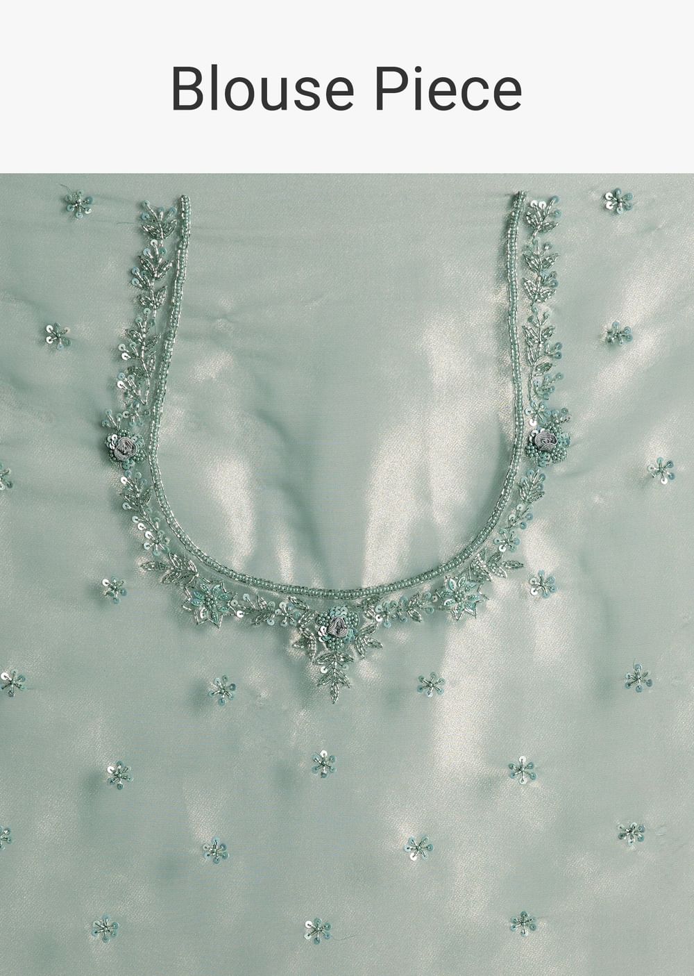 Teal Green Tissue Embroidered Saree With Heavy Hand Embroidery