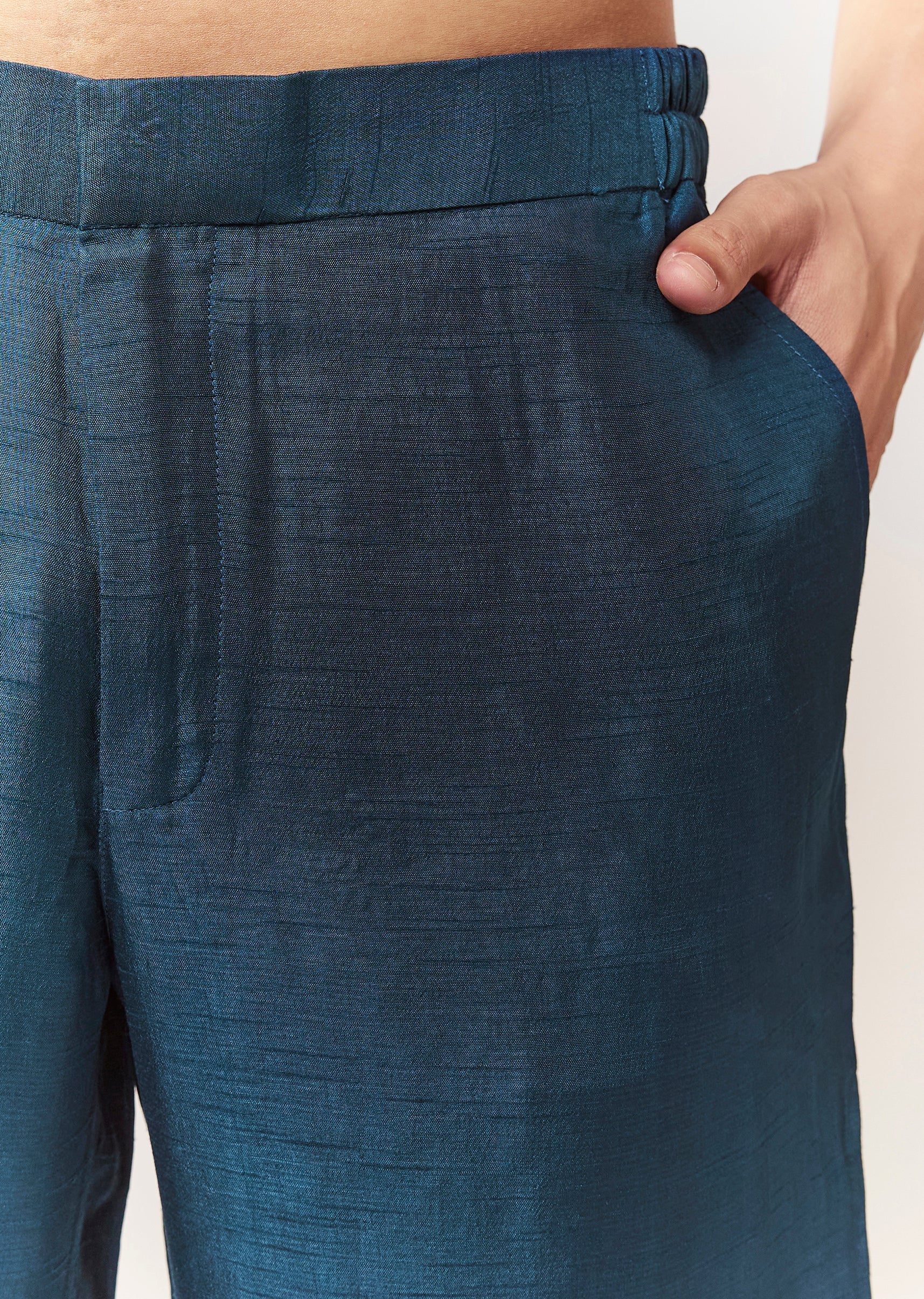 A contemporary silk (rawsilk) indo-western set in teal with thread/resham detailing. Mandarin collar, full sleeves, and front hook-eye closure. Includes kurta/jacket styling with straight pants (mid-waist). Great for mehendi, engagement, and sangeet looks. Awarded as the Most Trusted Brand, we're delivering styles you love, just as promised.