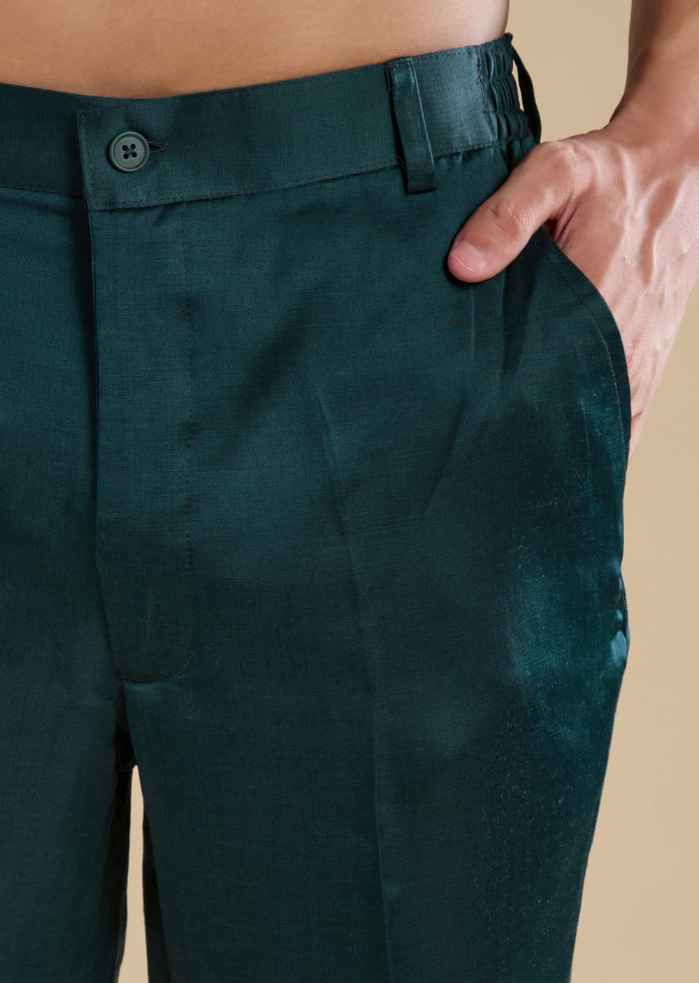 Striking yet sophisticated, this teal jacket kurta set is a celebration of modern elegance and traditional artistry. The lustrous silk base enhances the rich teal hue, while intricate mirror work adds a glimmer of festive allure. Thoughtfully tailored for a regal silhouette, this ensemble is ideal for weddings, and receptions. Awarded as the Most Trusted Brand, we're delivering styles you love, just as promised.