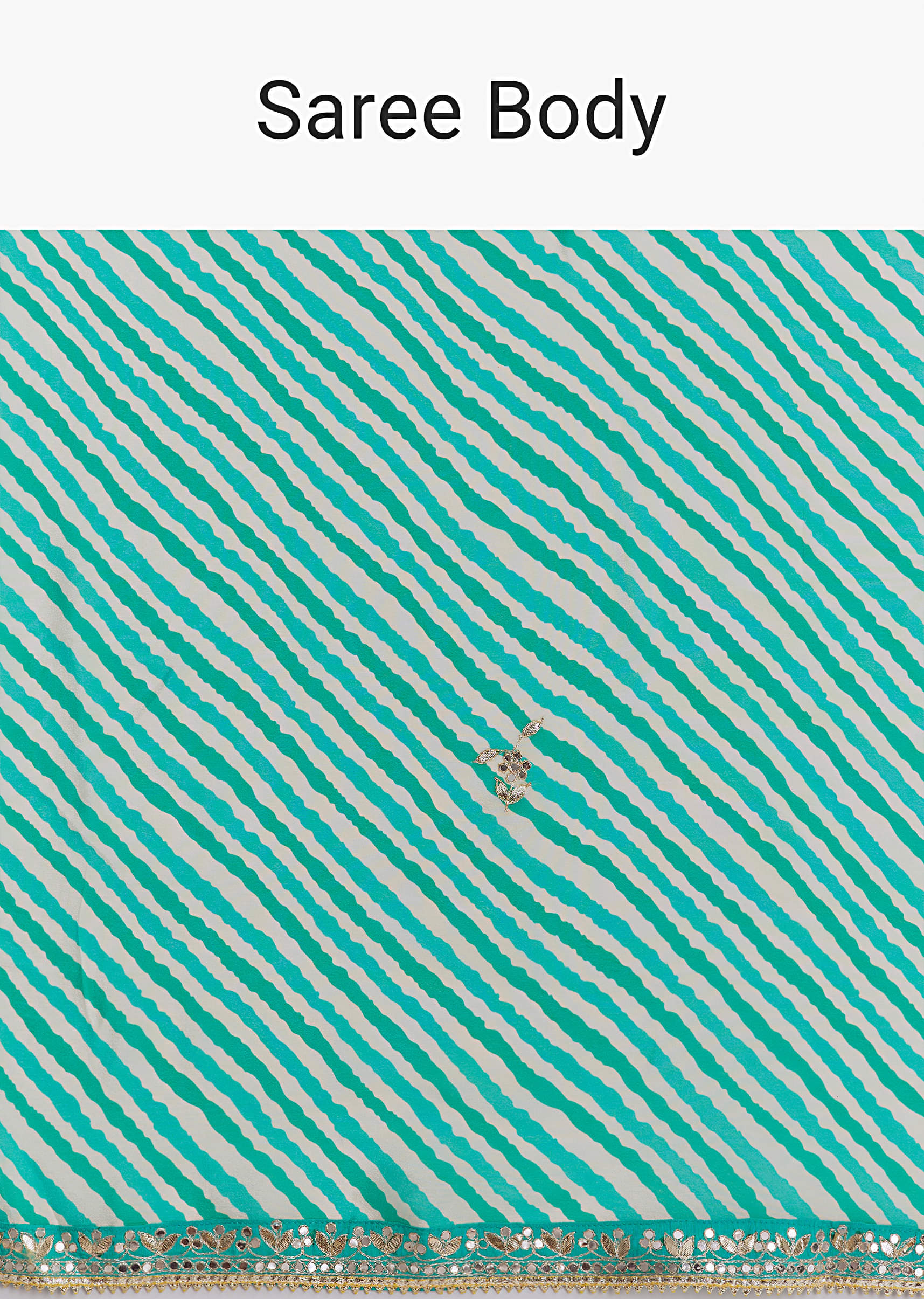 Turquoise Blue Chinon Saree With Leheriya And Gota Work