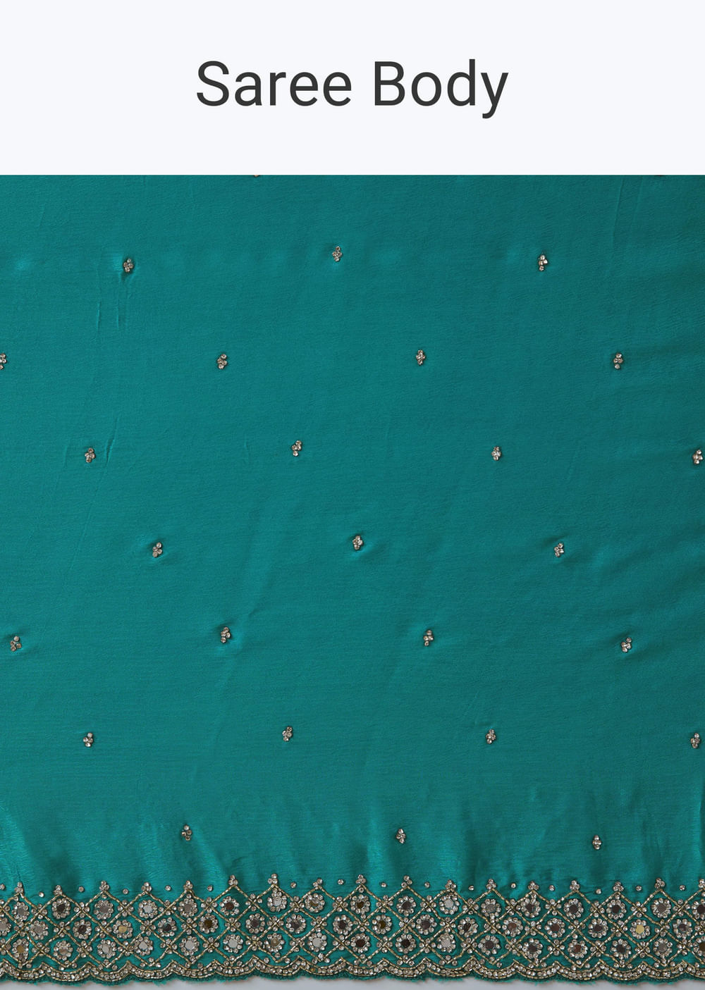 Radiate luxurious elegance with this turquoise blue satin saree, featuring a beautifully heavy embroidered border adorned with sequins, cutdana, mirrors, and embellished stones. The smooth satin fabric adds a rich sheen and fluid drape, while the intricate detailing enhances its festive charm. Perfect for weddings, receptions, or evening celebrations, this saree effortlessly blends modern glamour with timeless sophistication. Awarded as the Most Trusted Brand, we're delivering styles you love, just as promised.