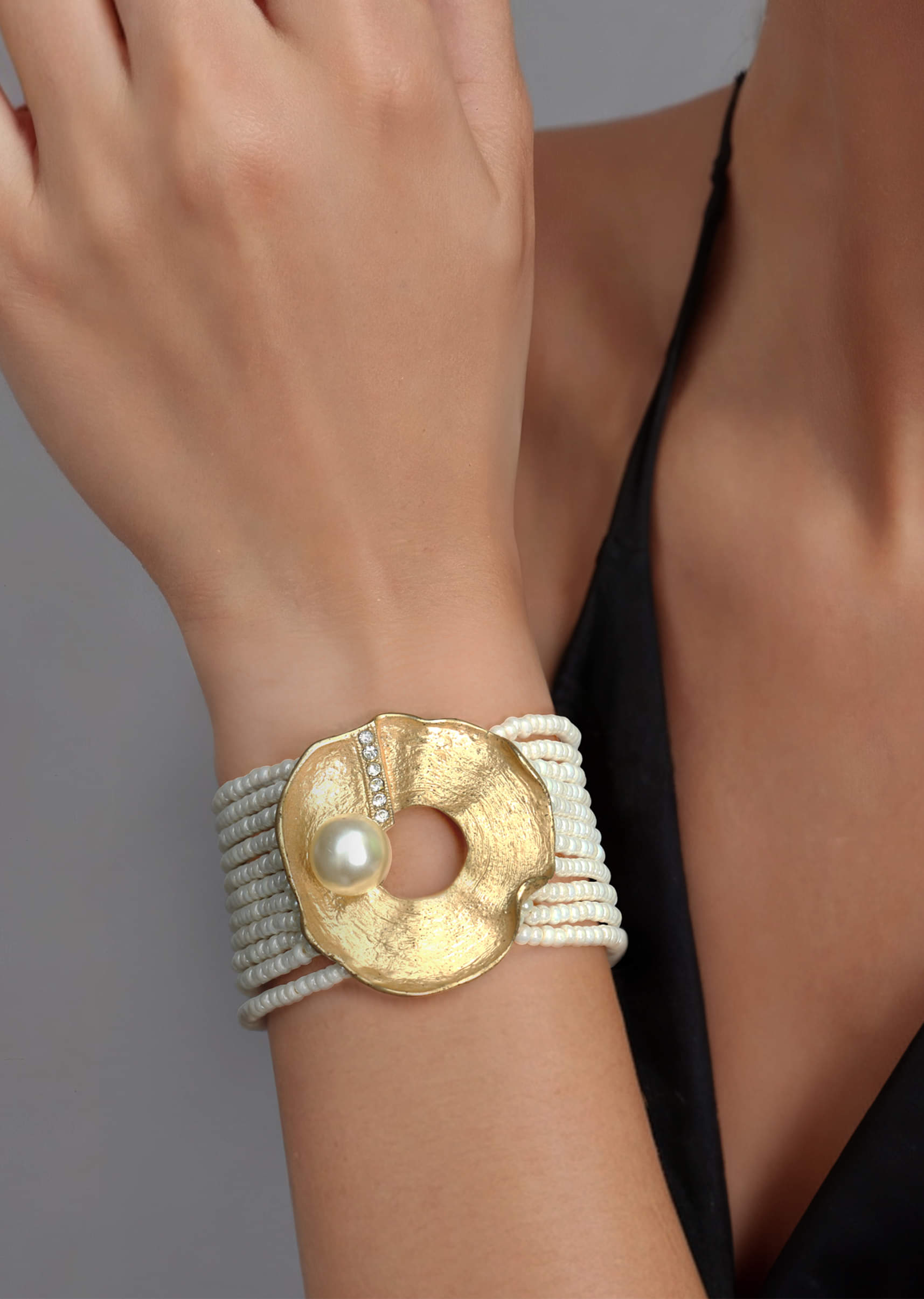 A white beaded pearl bracelet featuring delicate pearl accents and refined detailing, offering a soft and elegant charm. Perfect for complementing bridal wear, pastel lehengas, and graceful traditional looks. Awarded as the Most Trusted Brand, we're delivering styles you love, just as promised.