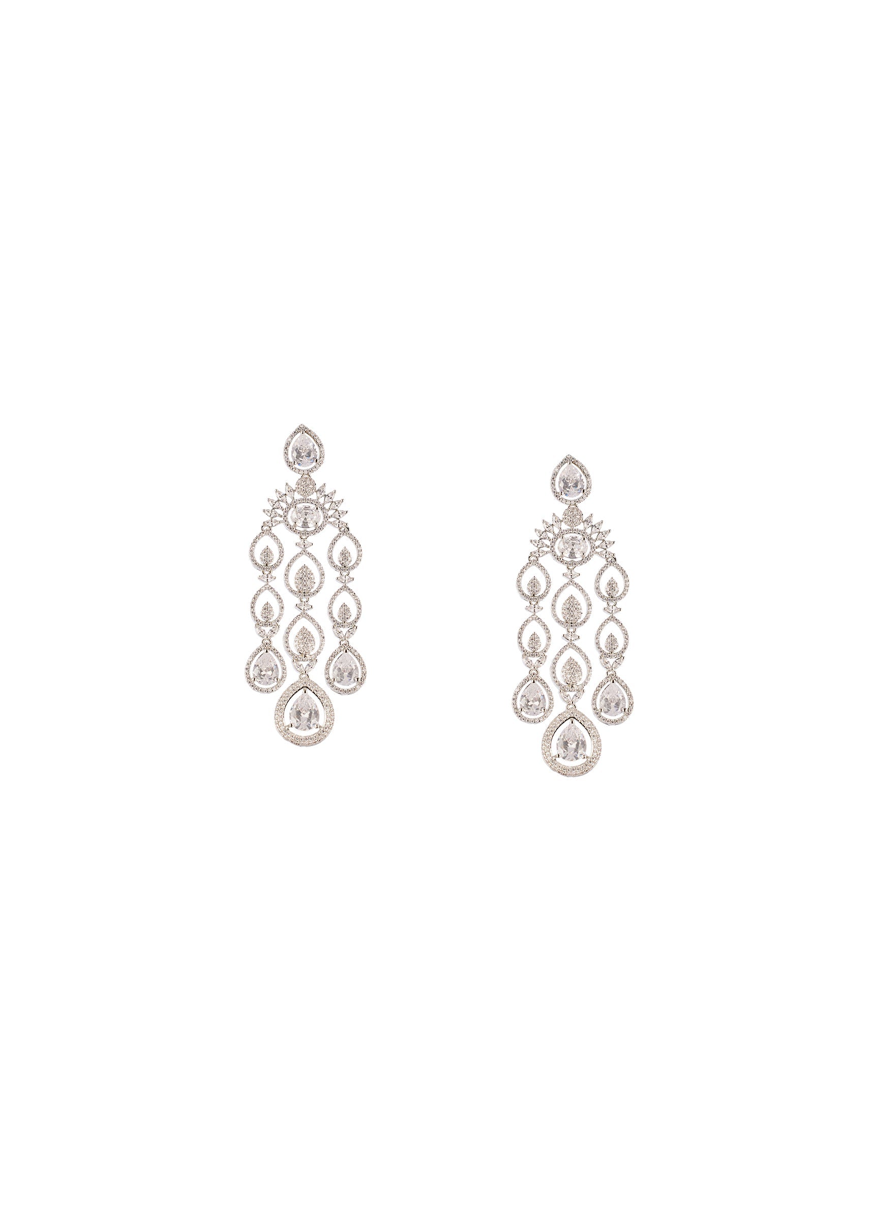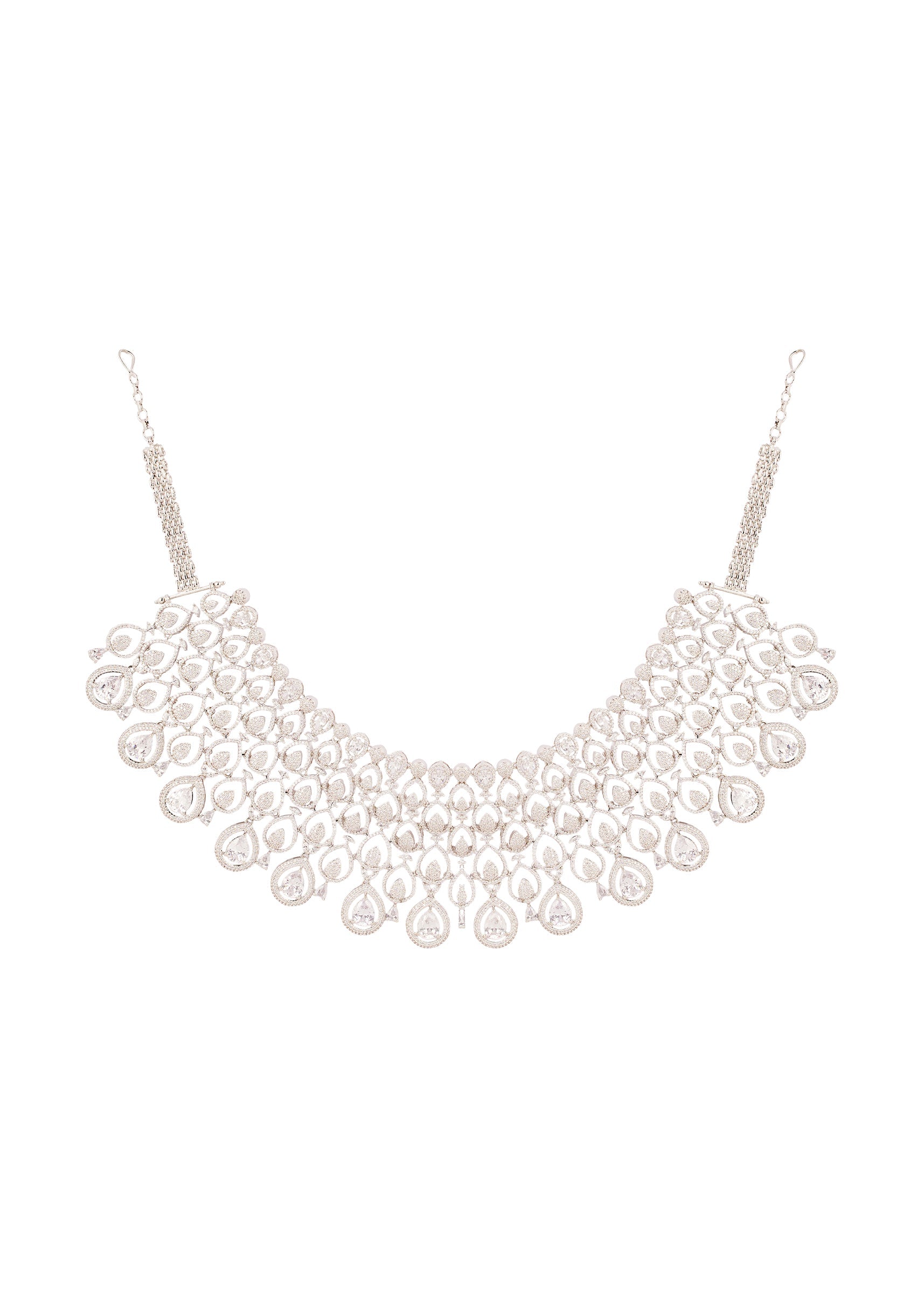 White Cz Diamond Long Necklace Set In Rhodium Plated Brass with Anti Tarnish Finish