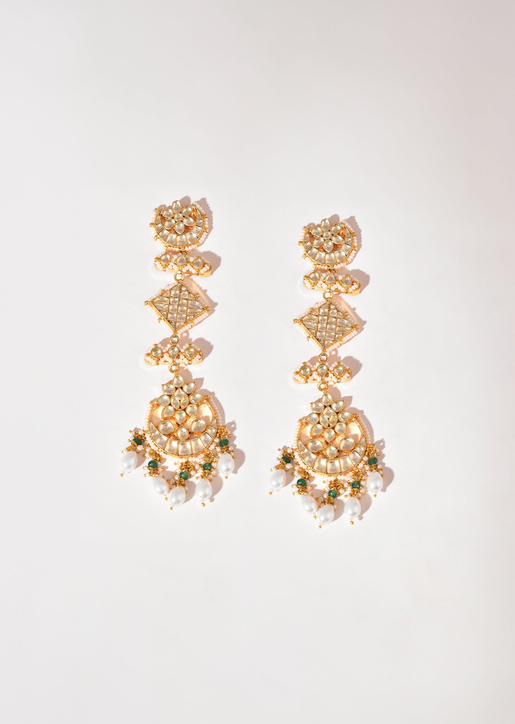 White Gold Earrings With Pachi Kundan