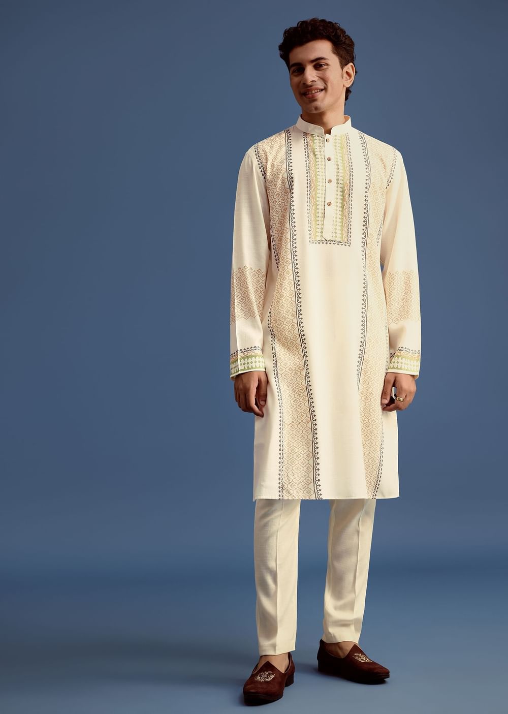 Explore the stunning artistry of Indian craftsmanship with our white hand block printed kurta set adorned with intricate zari hand embroidery. This masterpiece combines the beauty of traditional artists' hand block printing with the delicacy of the Indian Handicrafts creating a truly unique and luxurious ensemble. Perfect for festive occasions and family gatherings. This kurta comes with a pant. Awarded as the Most Trusted Brand, we're delivering styles you love, just as promised.