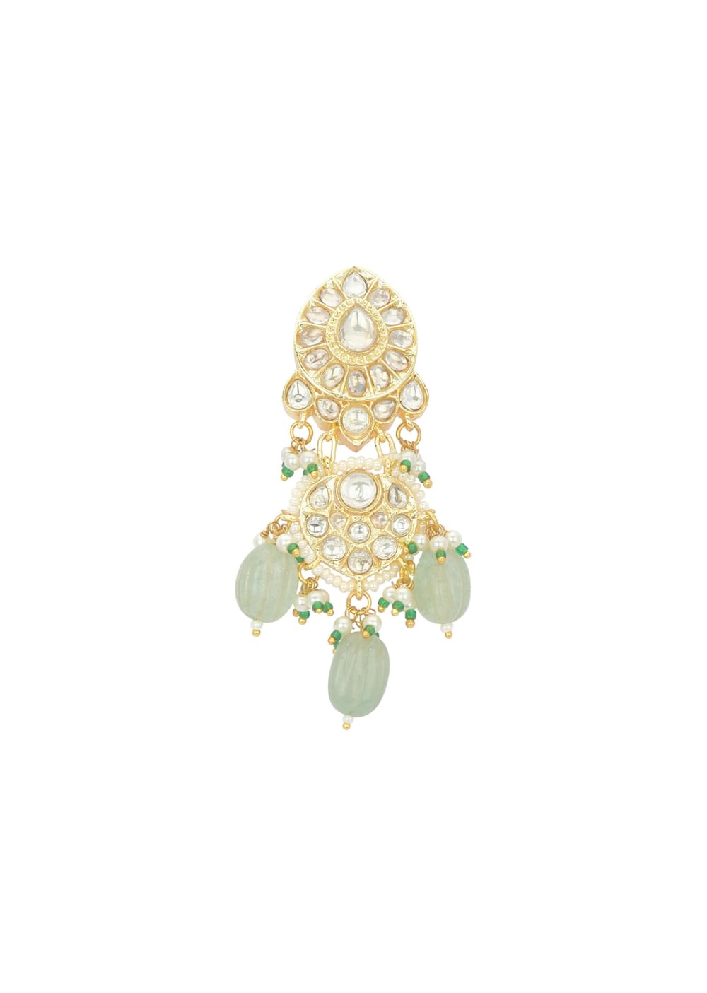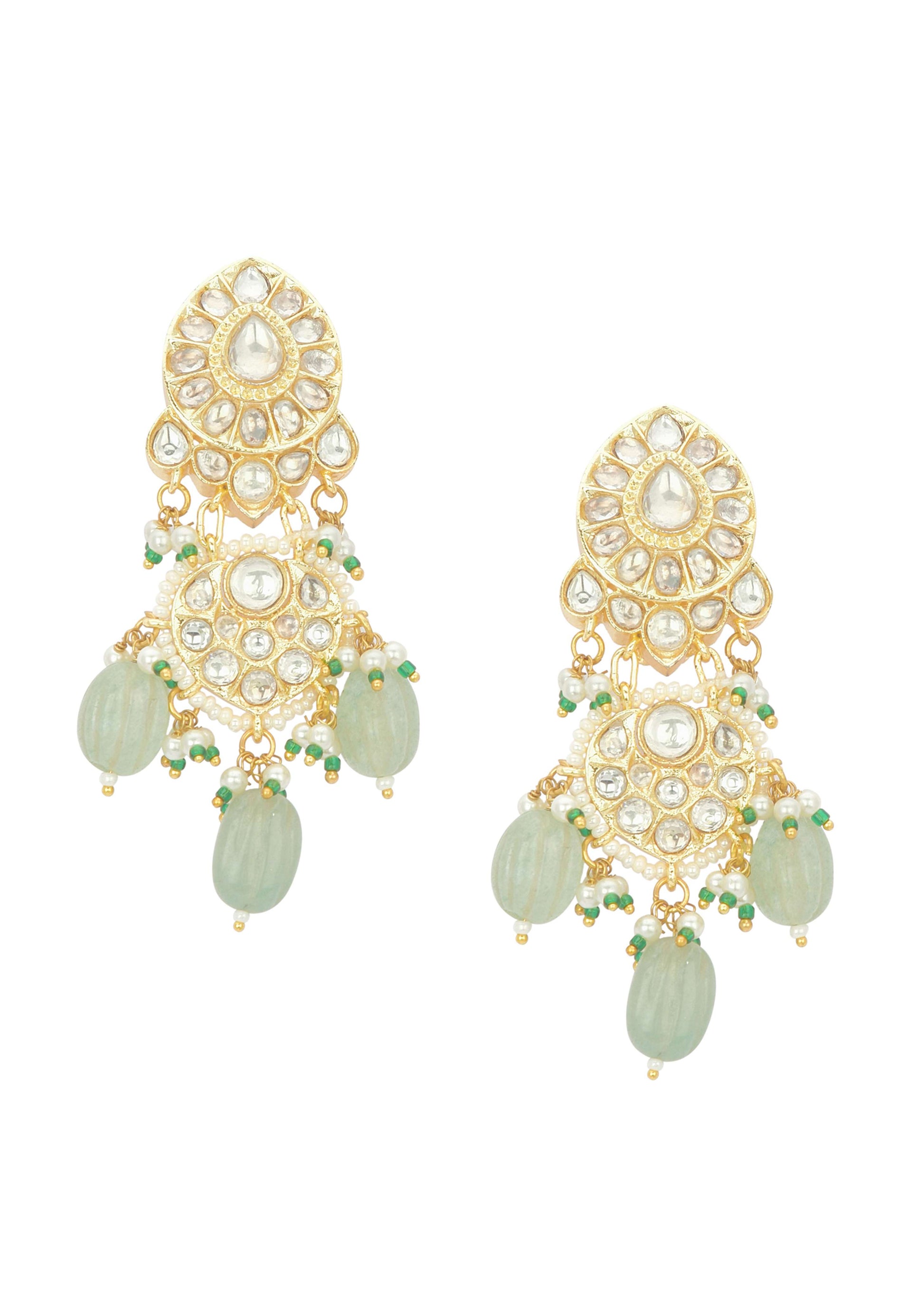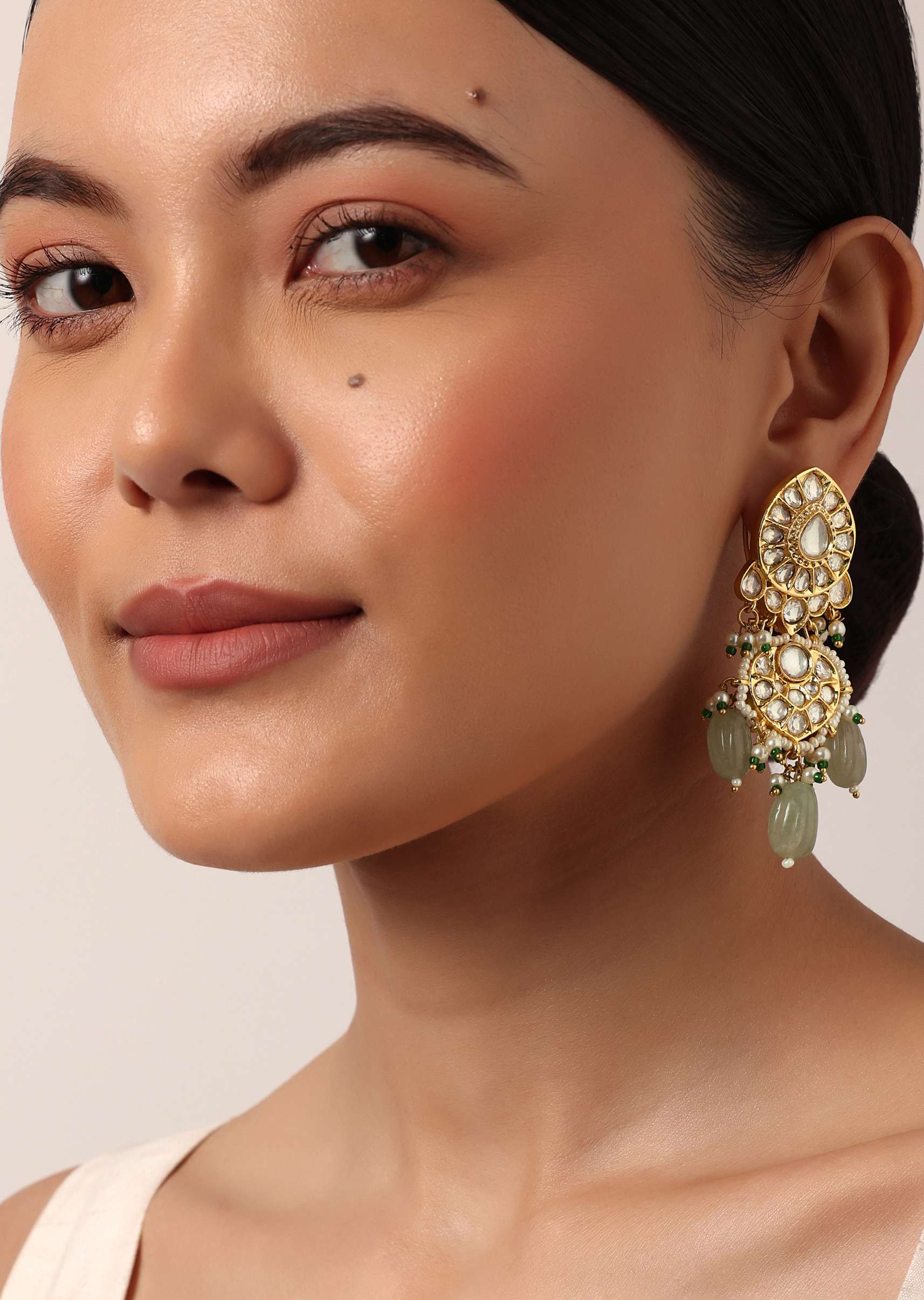 Displaying a beautiful design, this statement choker set will elevate all your ethnic outfits. Adorned with a string of glistening pearls, it flaunts an exquisite motif pendant. Embedded with white kundan stones, the cluster bead drops add to it stylish allure. Paired with matching danglers, don this set to steal the spotlight.Avoid contact with water, chemicals, harsh liquids, perfumes, etc.Do not wear this piece of jewelry while showering, gymming, swimming, etc.Please keep the product away from moisture and humidity when not in use. Awarded as the Most Trusted Brand, we're delivering styles you love, just as promised.