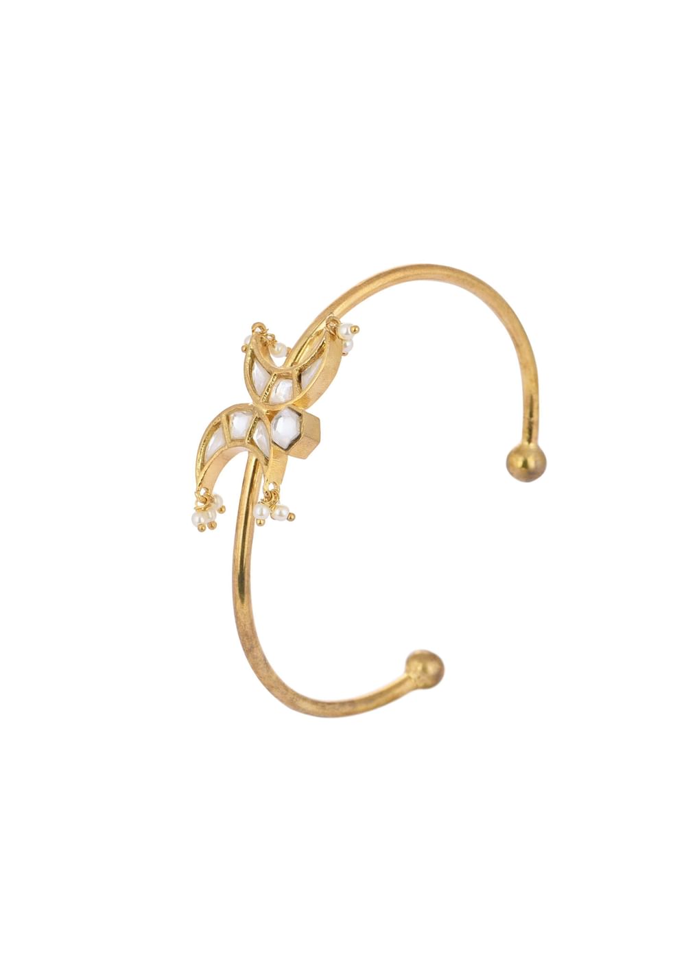 Step into a world of charm with our white polki bracelet in .mix metal a masterpiece of creativity and beauty. The bracelet showcases a radiant gold finish and a captivating butterfly design exuding a whimsical allure that captures the imagination. The delicate pearl drop enhances the bracelet's enchanting appeal.EVENT - Perfect for all festive occasions.Store in a dust bag. Keep away from moisture perfume alcohol and harsh chemicals. Spot clean only. Keep away from sharp objects. Actual color may slightly vary due to photographic lighting sources and device screen settings. Awarded as the Most Trusted Brand, we're delivering styles you love, just as promised.