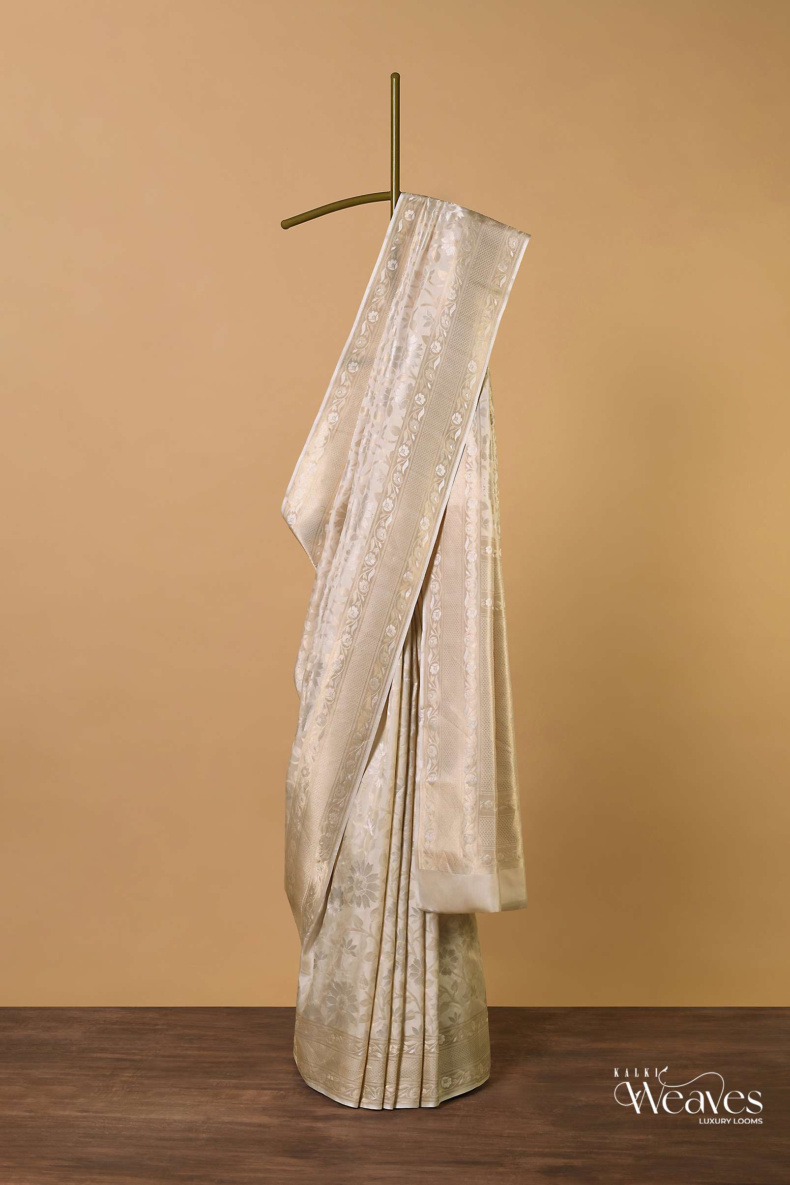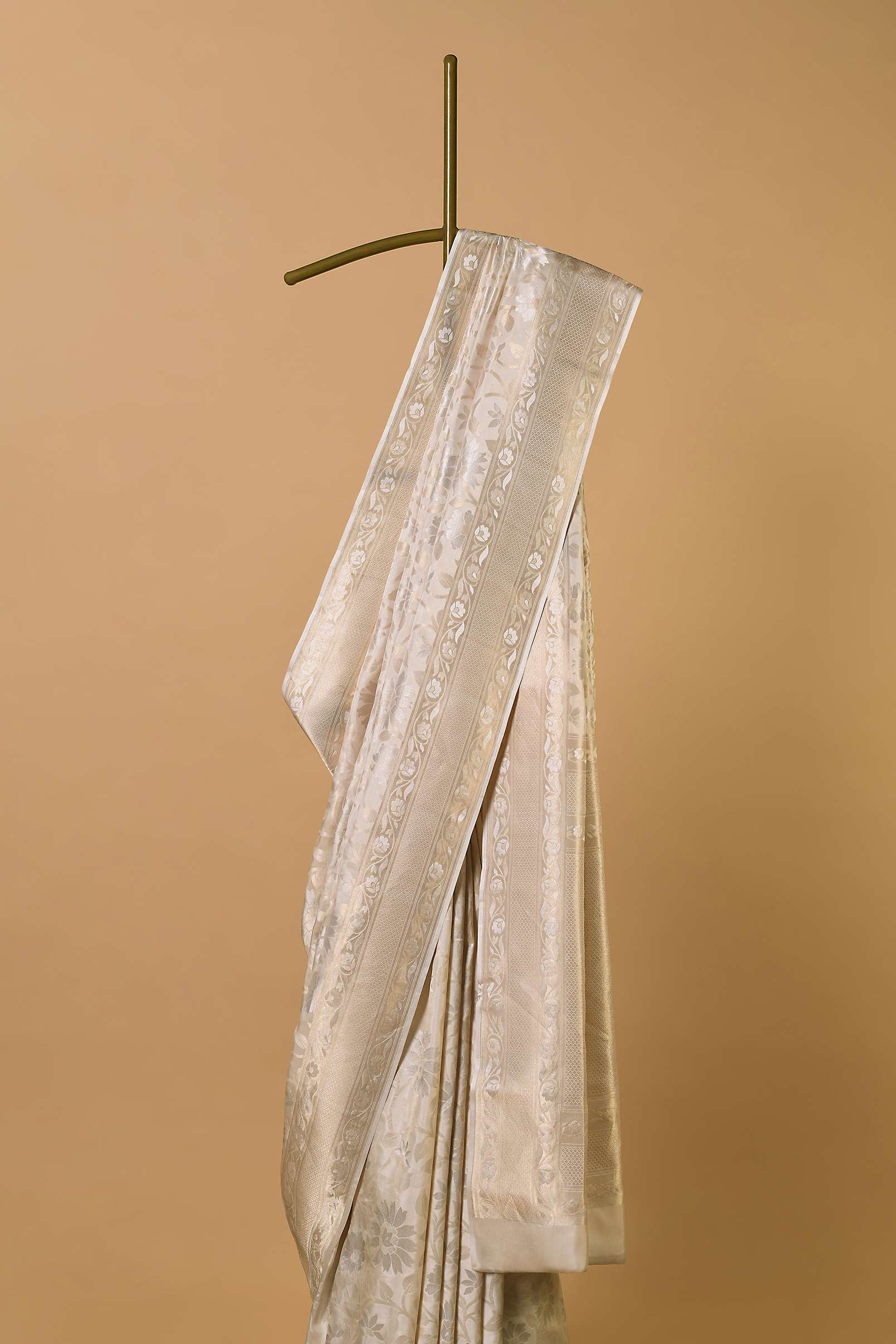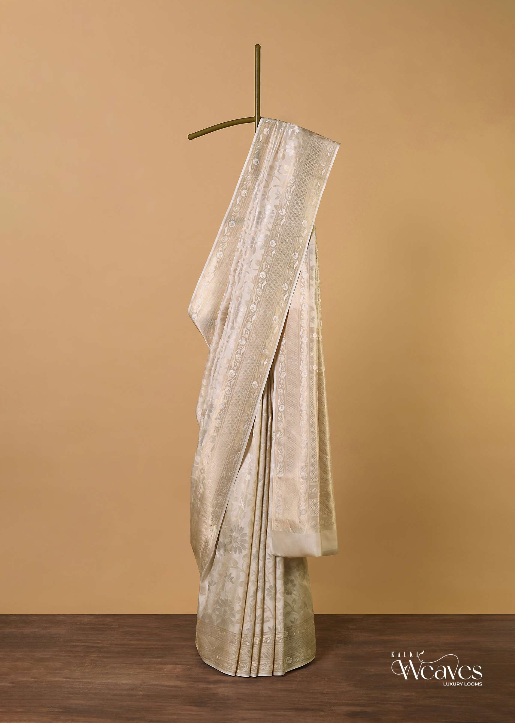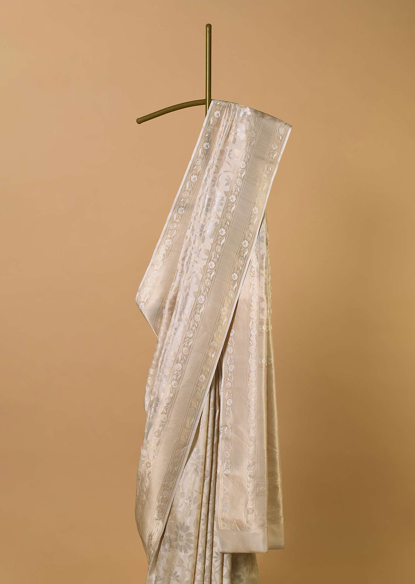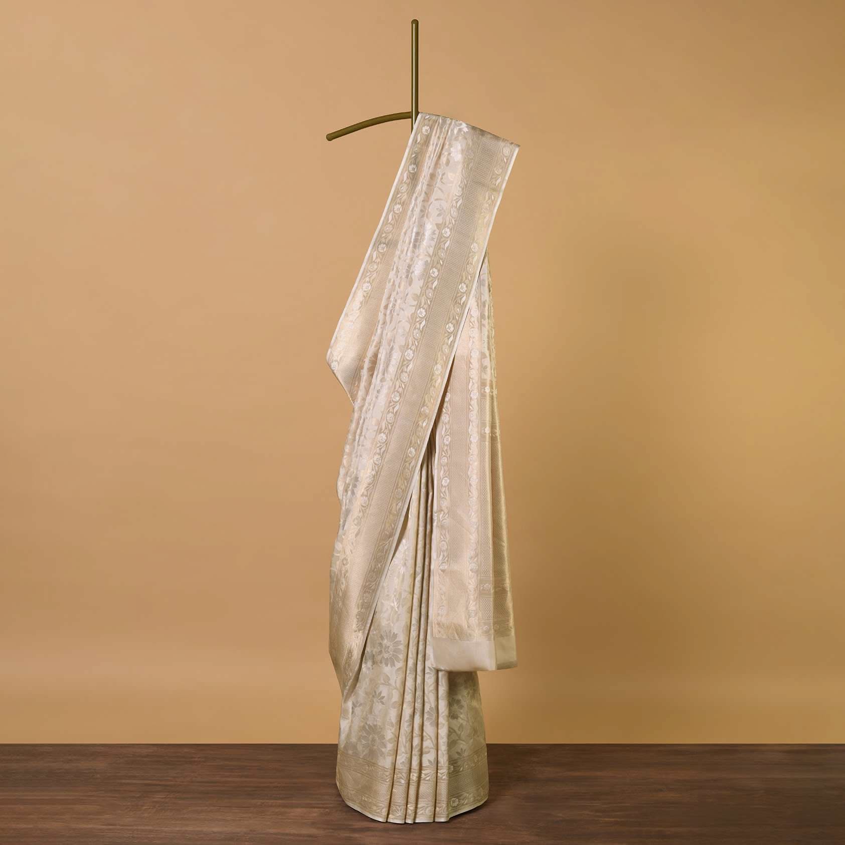 Ideal for pre-wedding functions and festive pooja's, this classic saree will help you stylishly stand out from the rest. Fashioned in a serene white hue, it is made from high quality south dharmavaram silk fabric. Detailed with all-over antique zari weaved motifs, this opulent drape comes with an unstitched blouse piece. Awarded As The Most Trusted Brand We'Re Delivering Styles You Love Just As Promised.