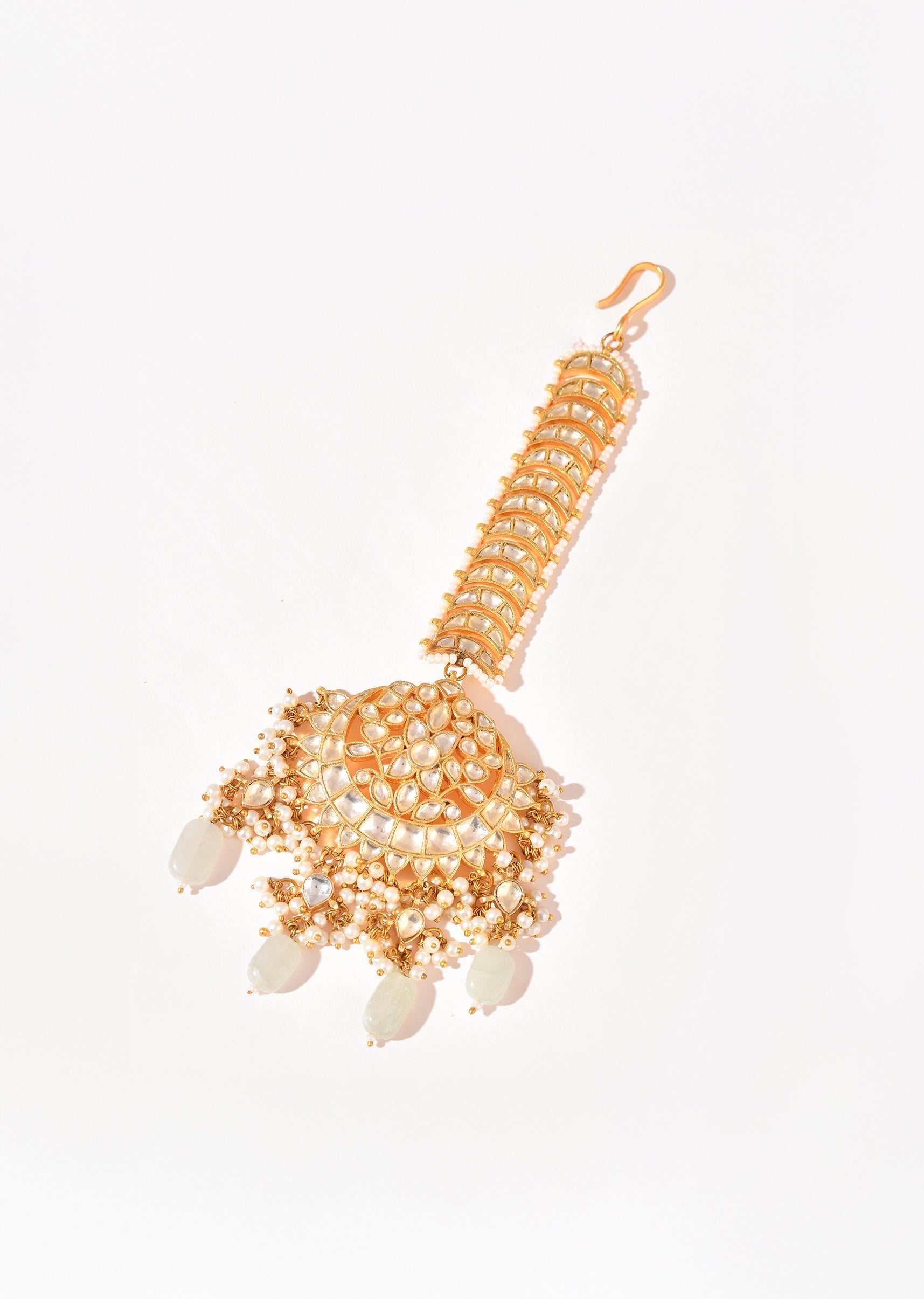 Whte and Gold Cluster Beads Chandbali Kundan Maangtikka