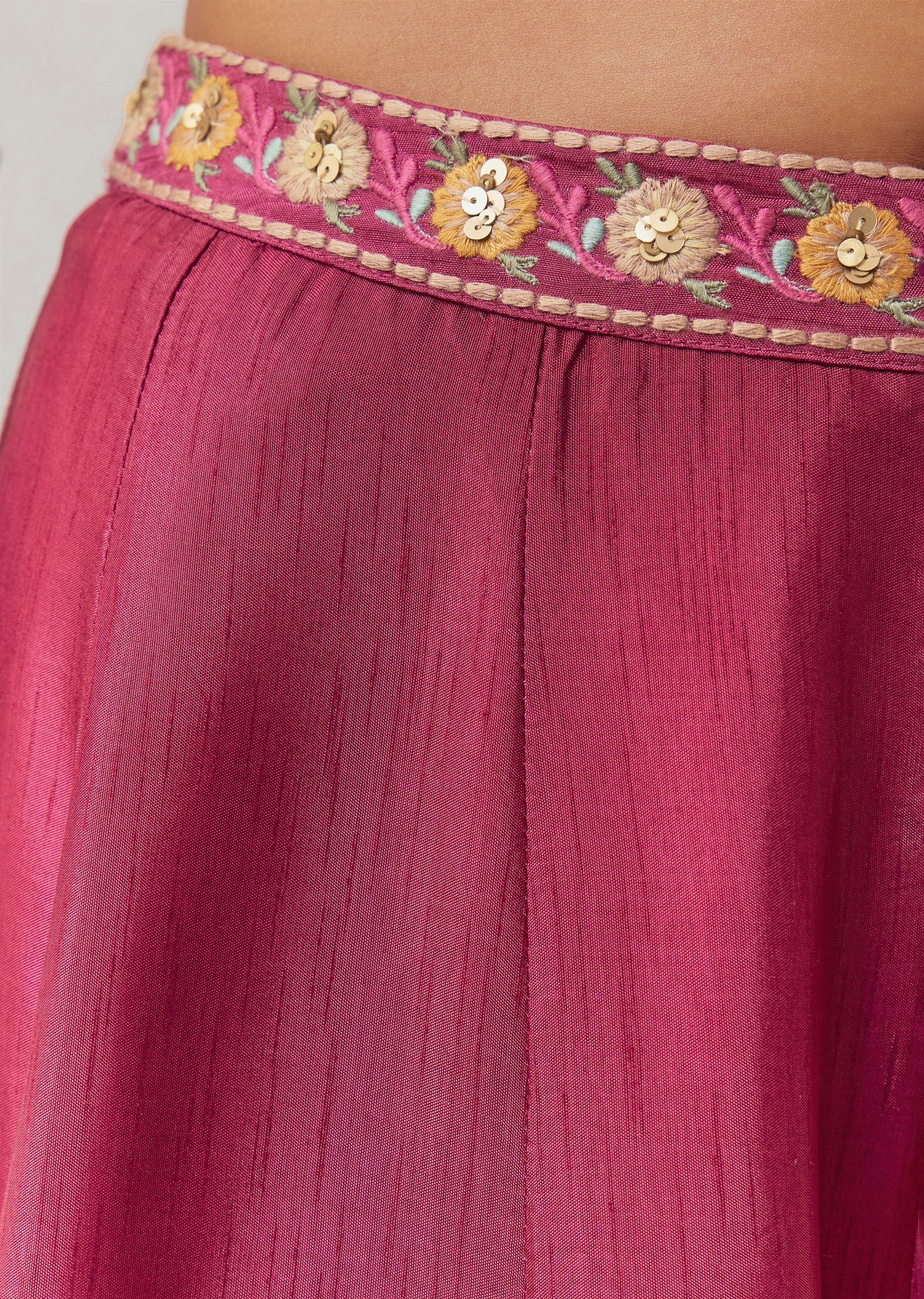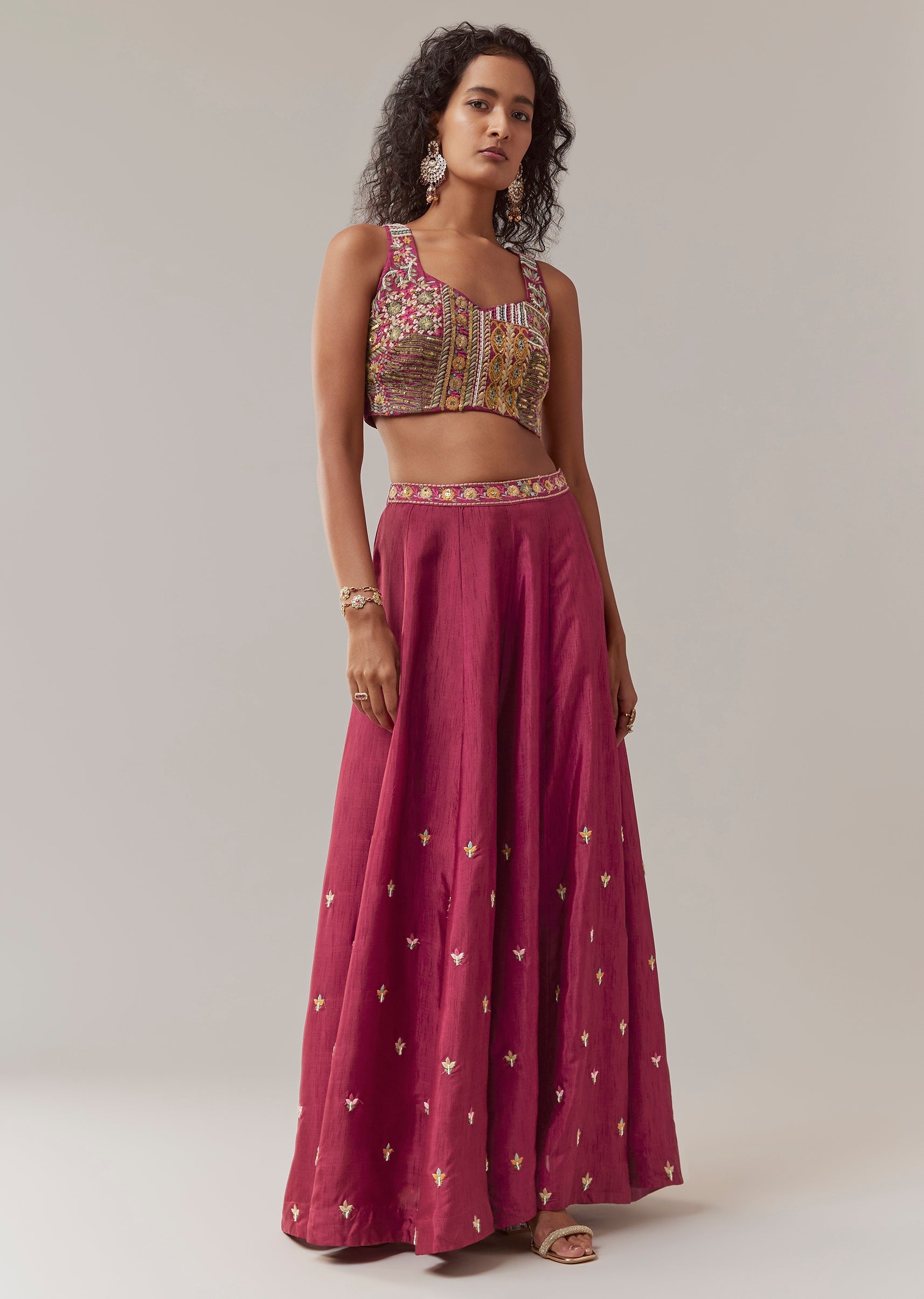 Wine Indowestern Silk Crop Top and Palazzo Set
