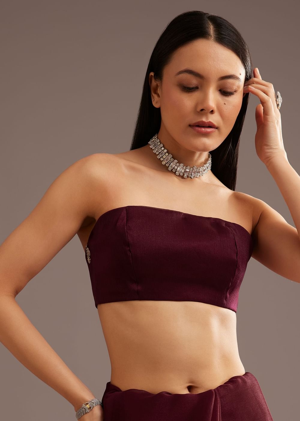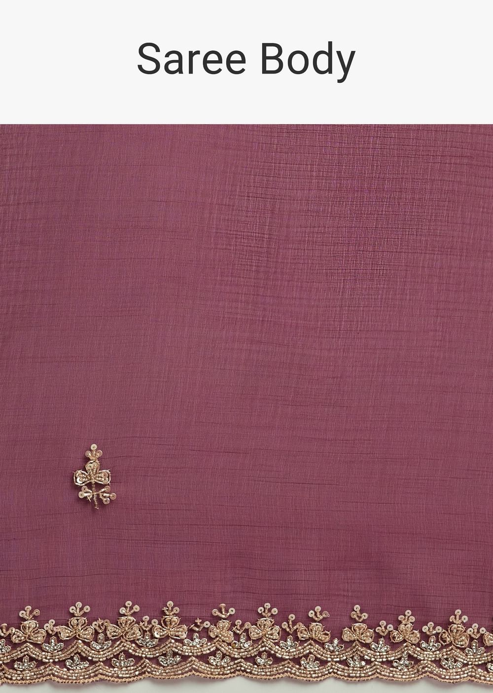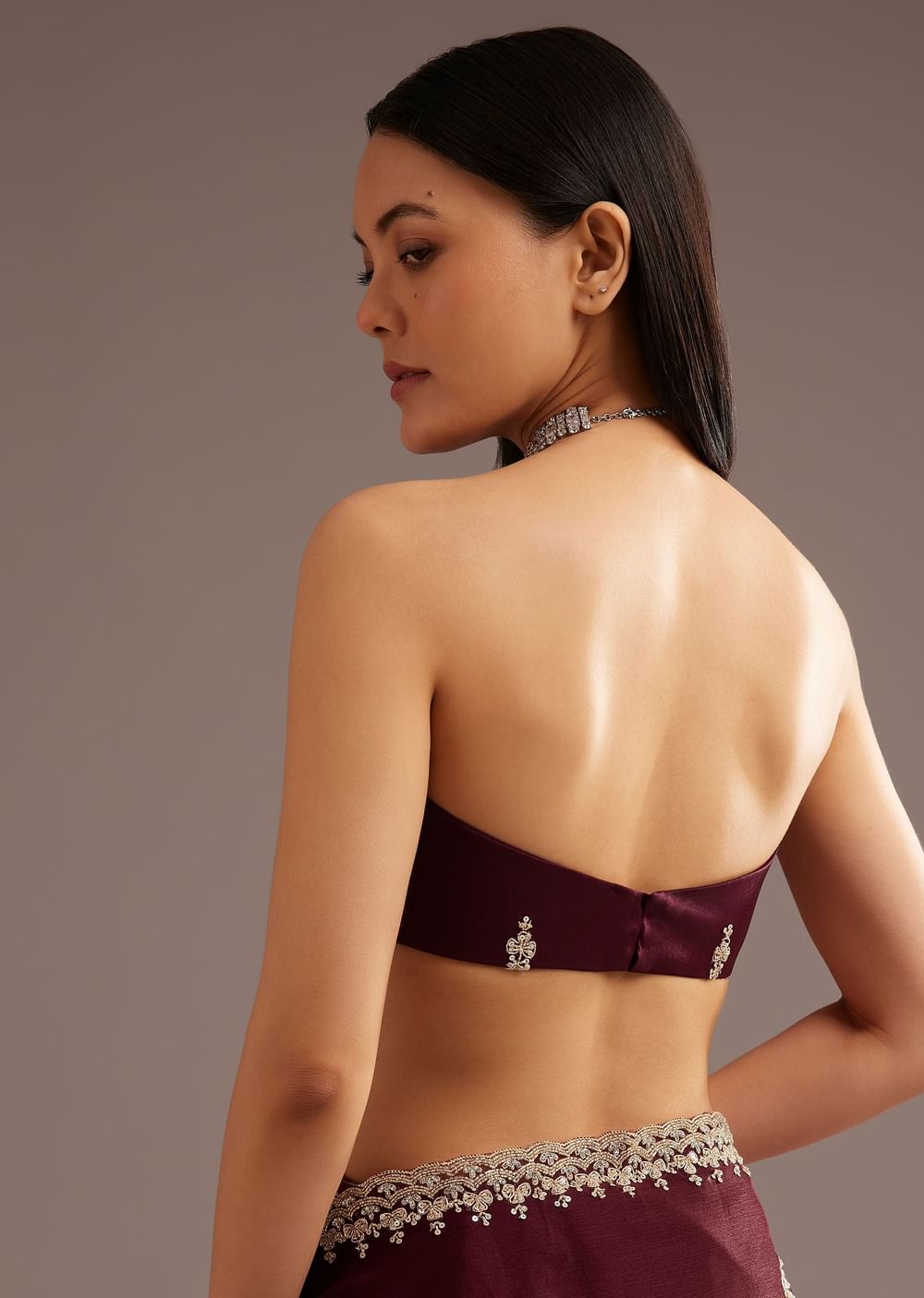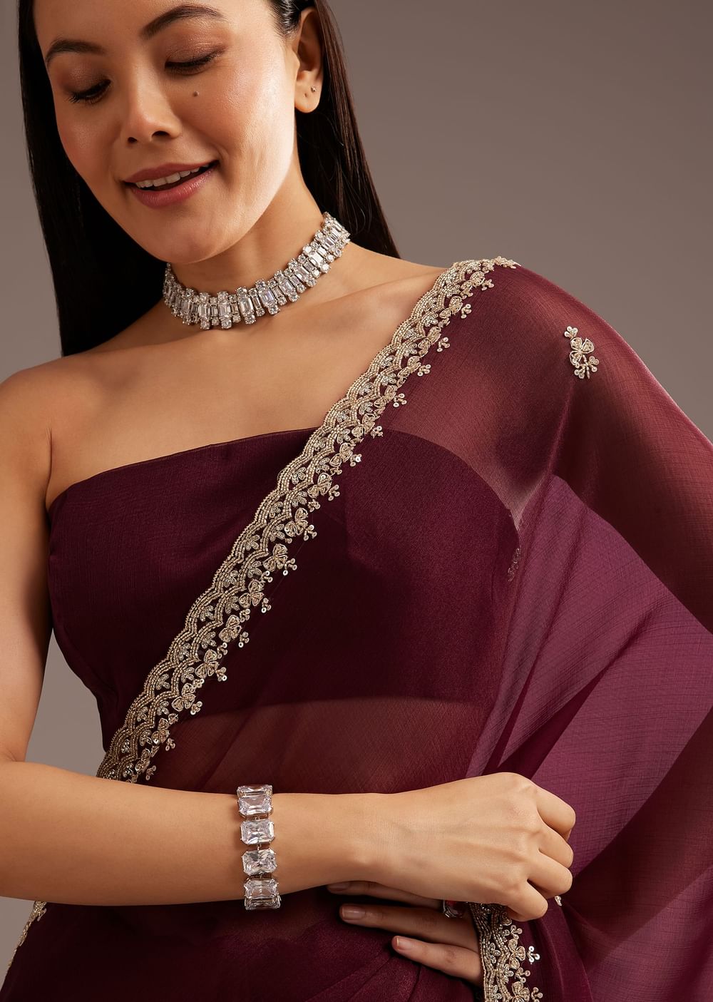 Enchant With Elegance In This Wine Organza Saree Beautifully Crafted With Cutdana And Sequins Embroidery On The Border And Pallu. Its Rich Color And Shimmering Details Make It Perfect For Grand Occasions And Special Celebrations.Awarded As The Most Trusted Brand We'Re Delivering Styles You Love Just As Promised.