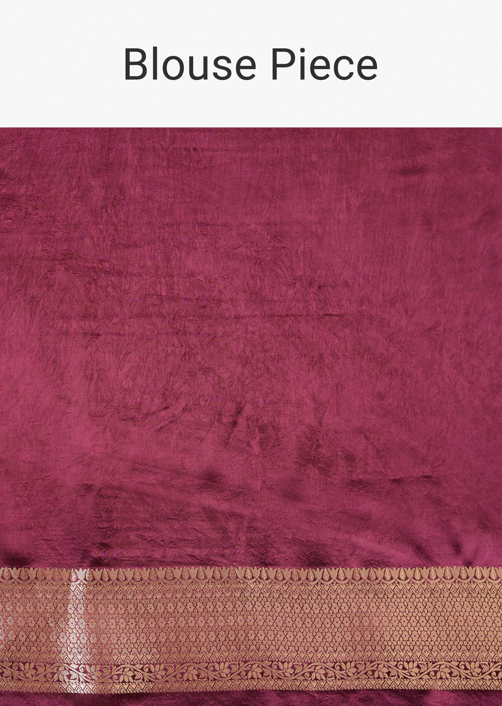 Wine Satin Woven Border Saree with Unstitched Blouse