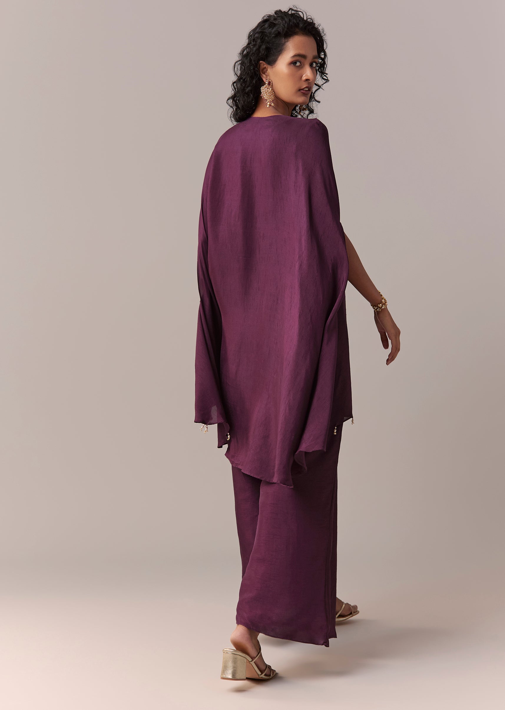Wine Silk Cape Co-ord Set