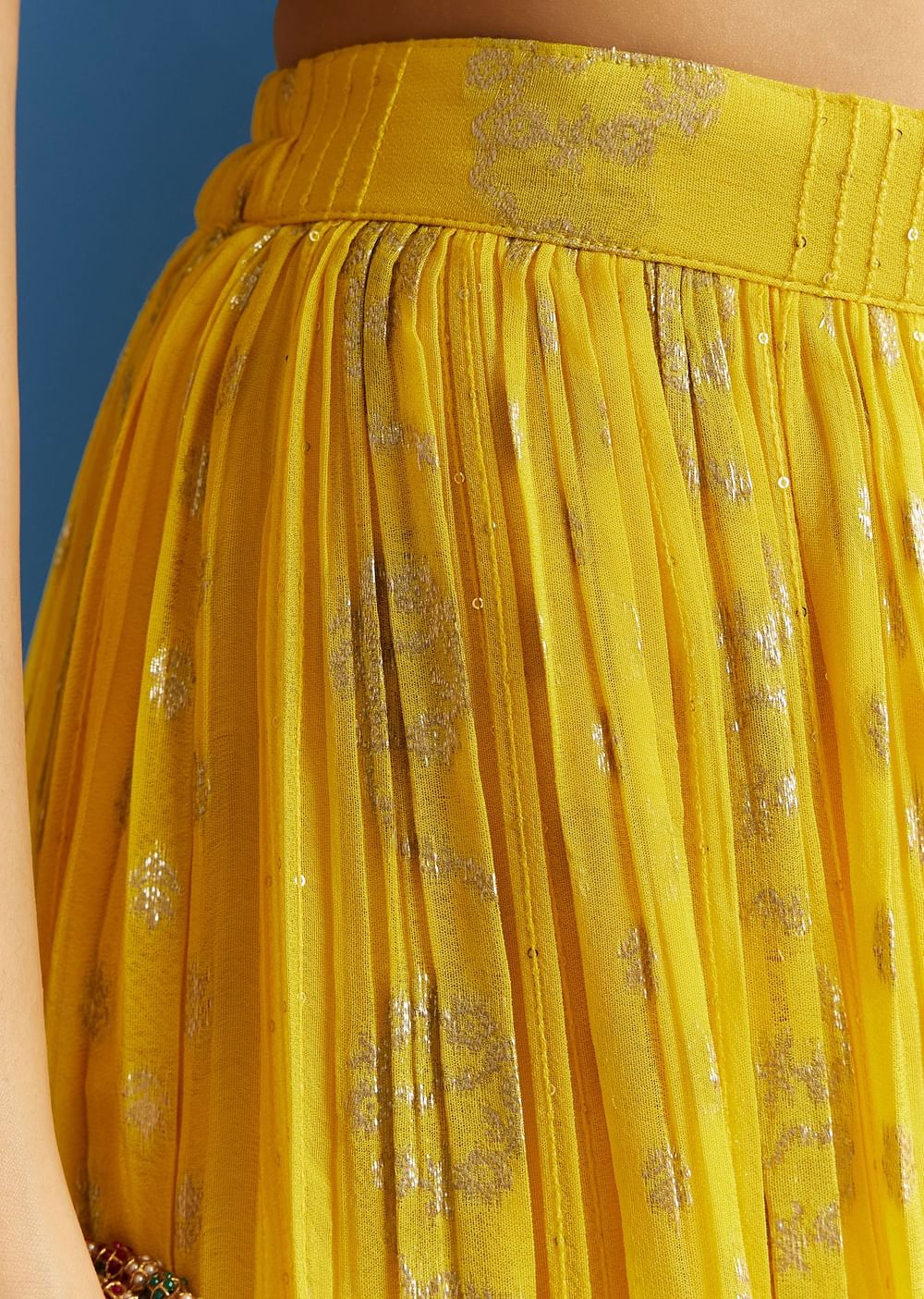 The silhouette flatters while the detailing enhances traditional charm. This yellow A-line kurta is detailed with thread and sequins work and comes with a net dupatta featuring sequins butti—ideal for... More Product Details
