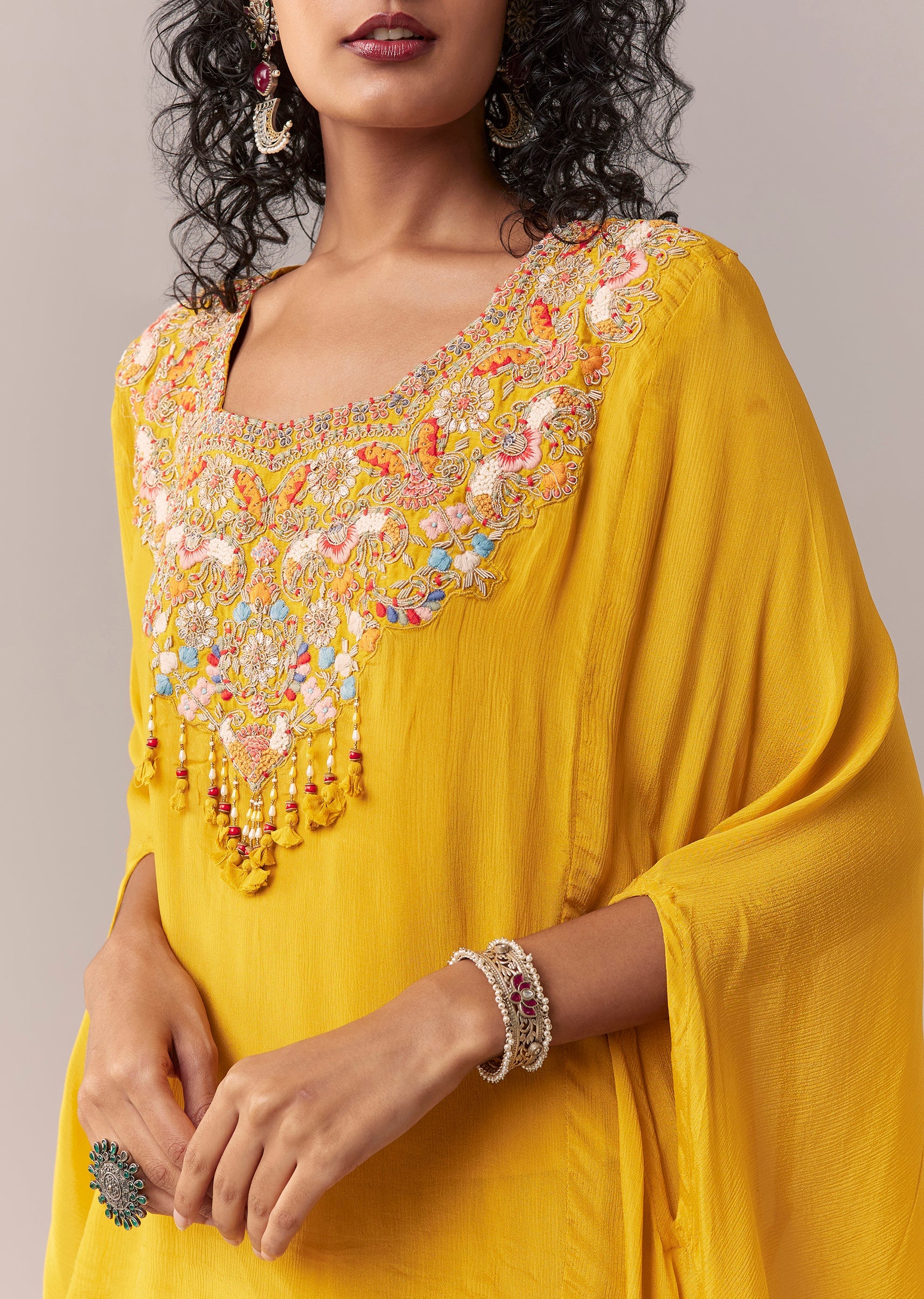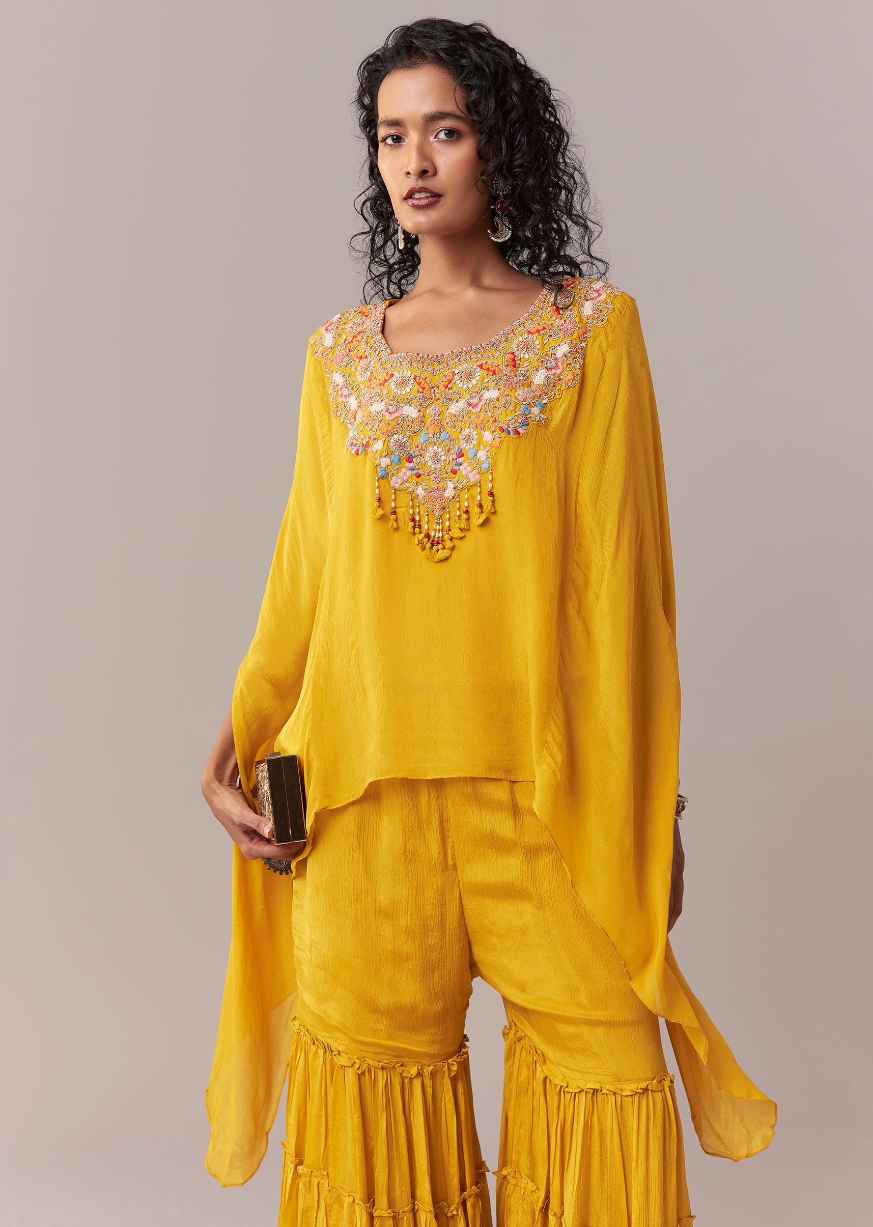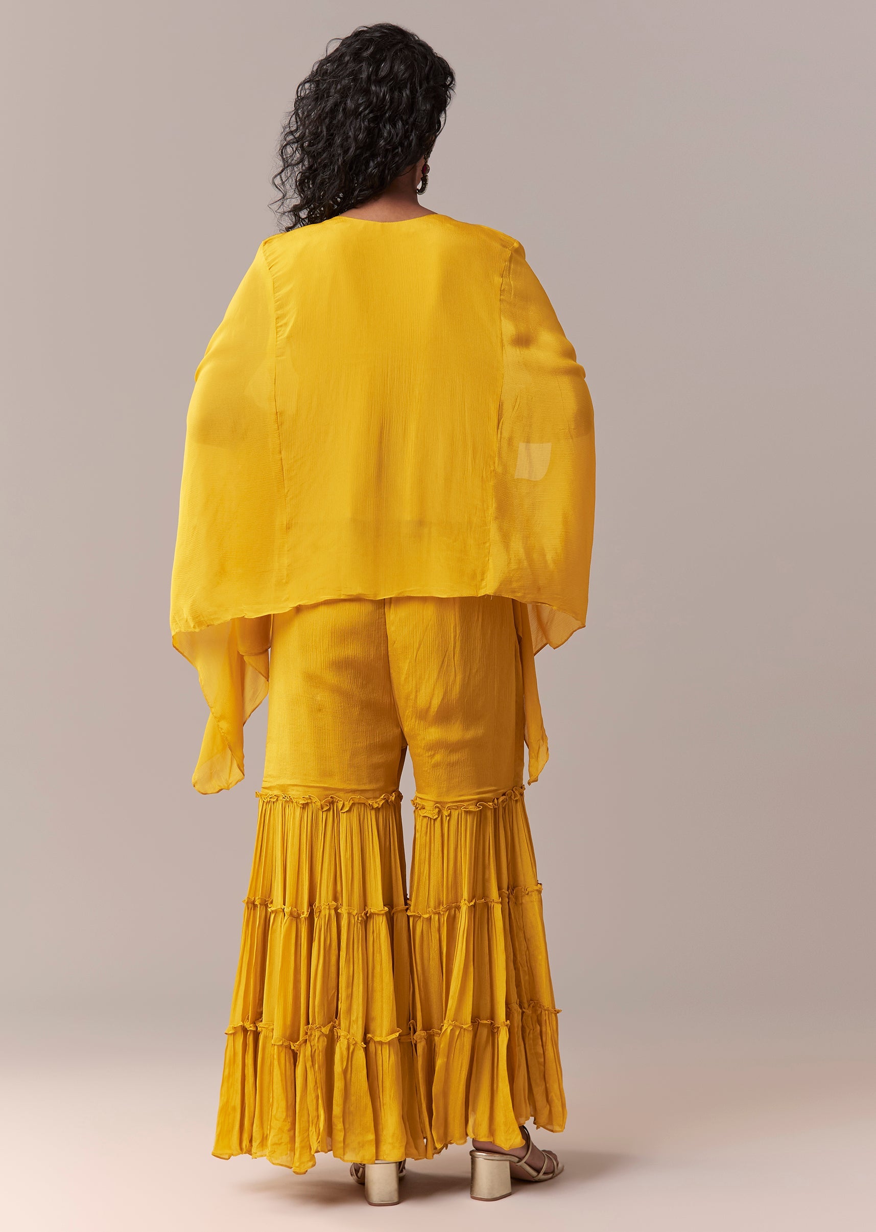Yellow Asymmetric Sharara Cape Set