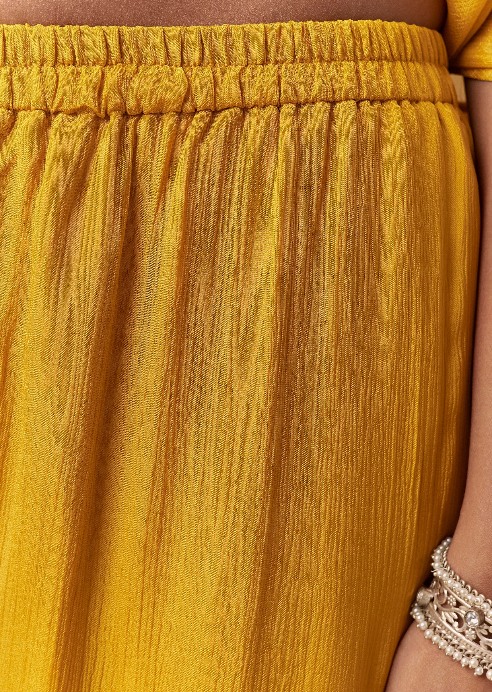 The sharara sits mid-waist with a comfortable elasticated fit—choose your regular size for best results.