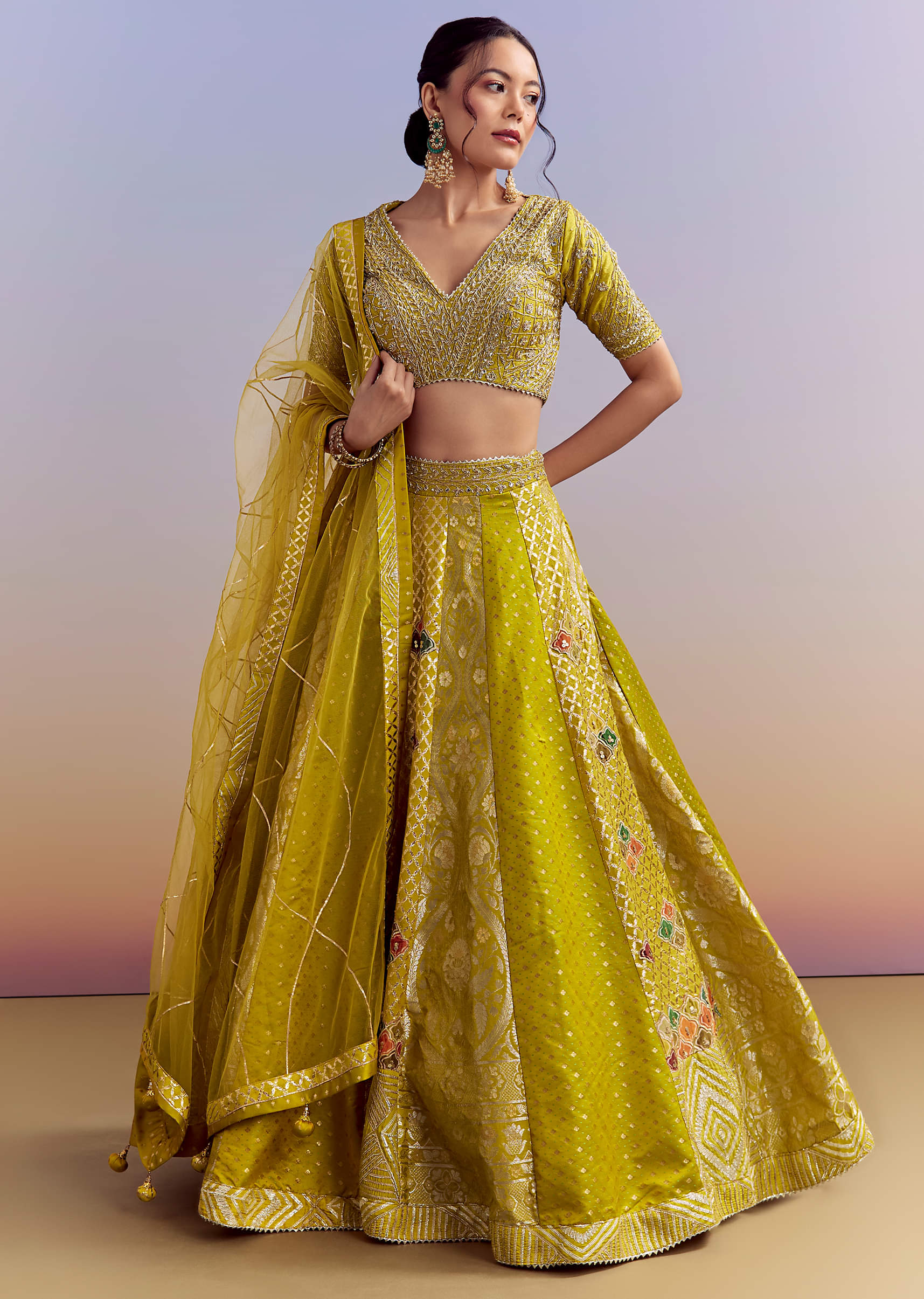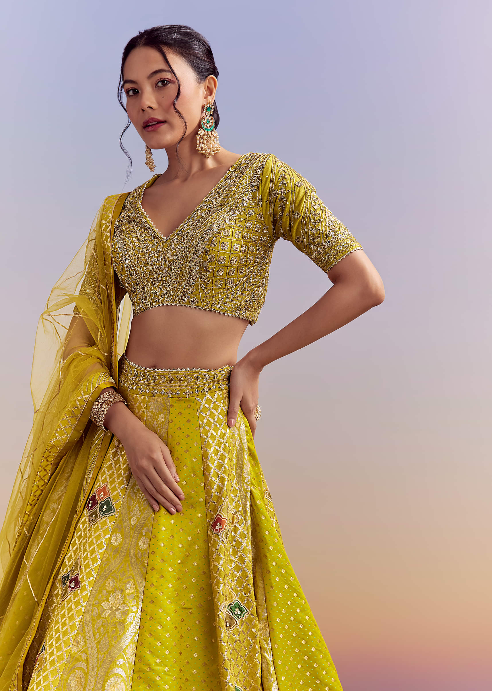 Yellow Brocade Organza Bridesmaid Lehenga With Zardosi Embroidery