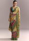 Yellow Cotton Saree With Hand Painted Motifs And Green Border