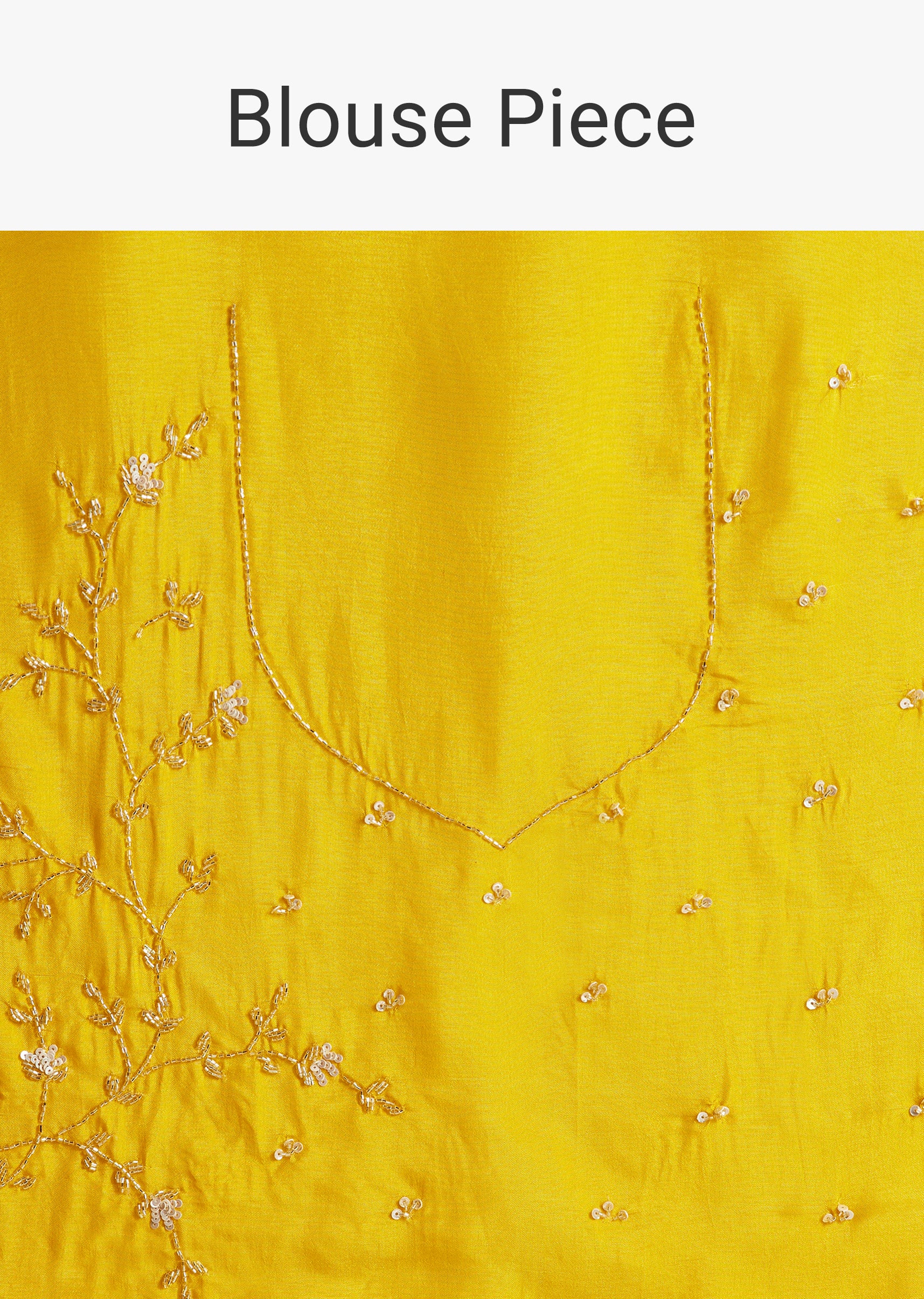 Yellow Crepe Saree With Floral Digital Print And Sequin Embroidery