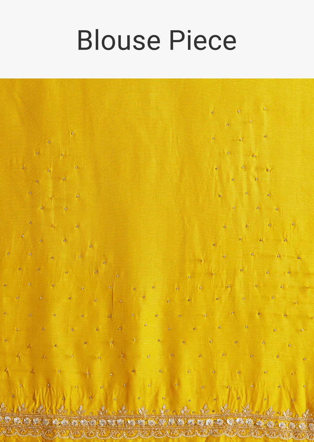 Brighten any celebration with this yellow crepe saree, adorned with multicolor floral prints and embellished with stones, sequins, and cutdana. Its embroidered border adds a luxe finish. Awarded as the... More Product Details