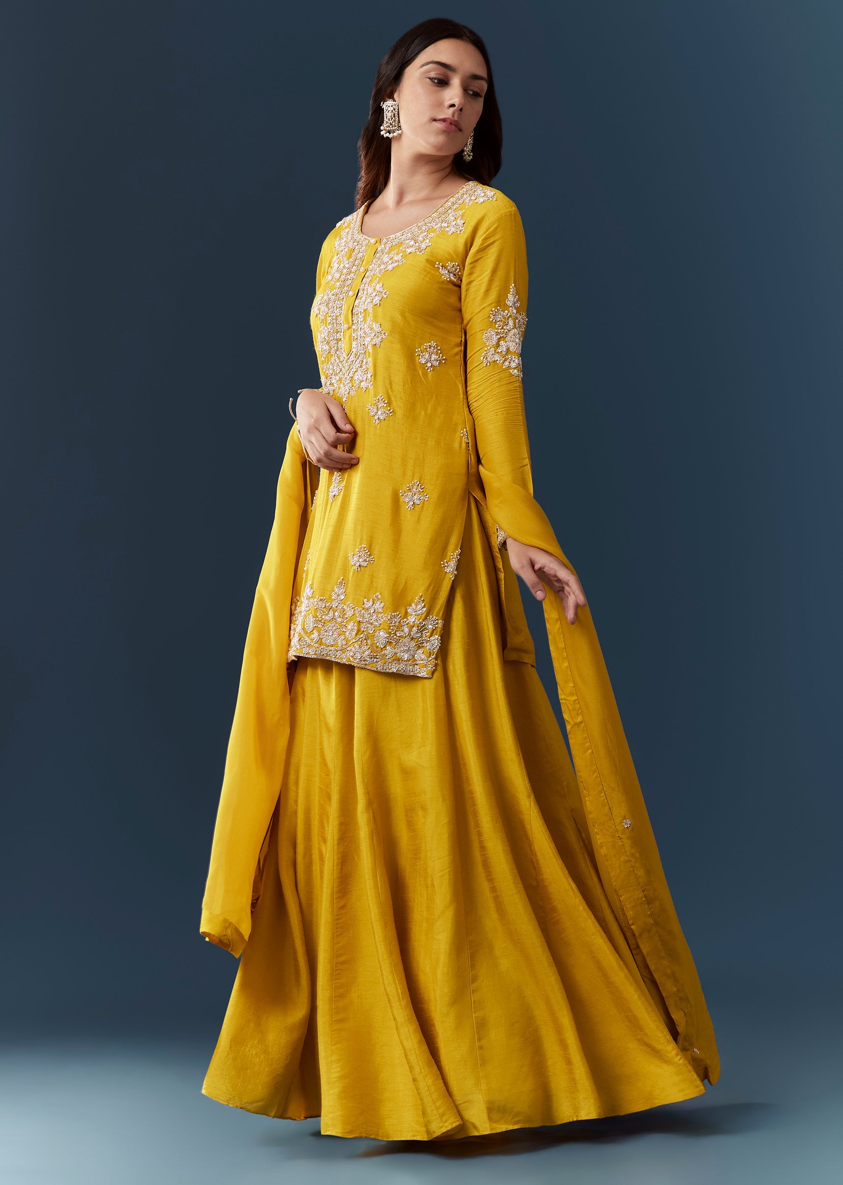 Yellow Cutdana Work Kurta and Skirt Set