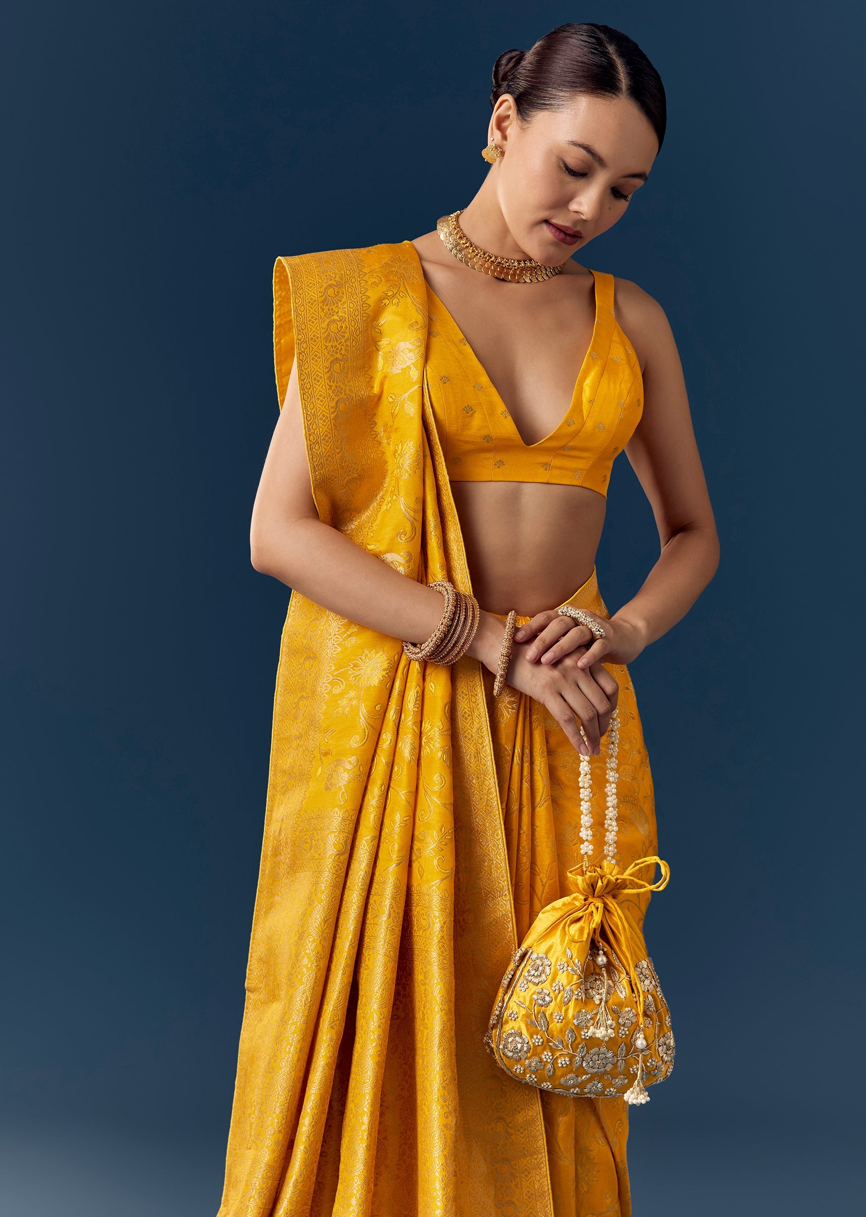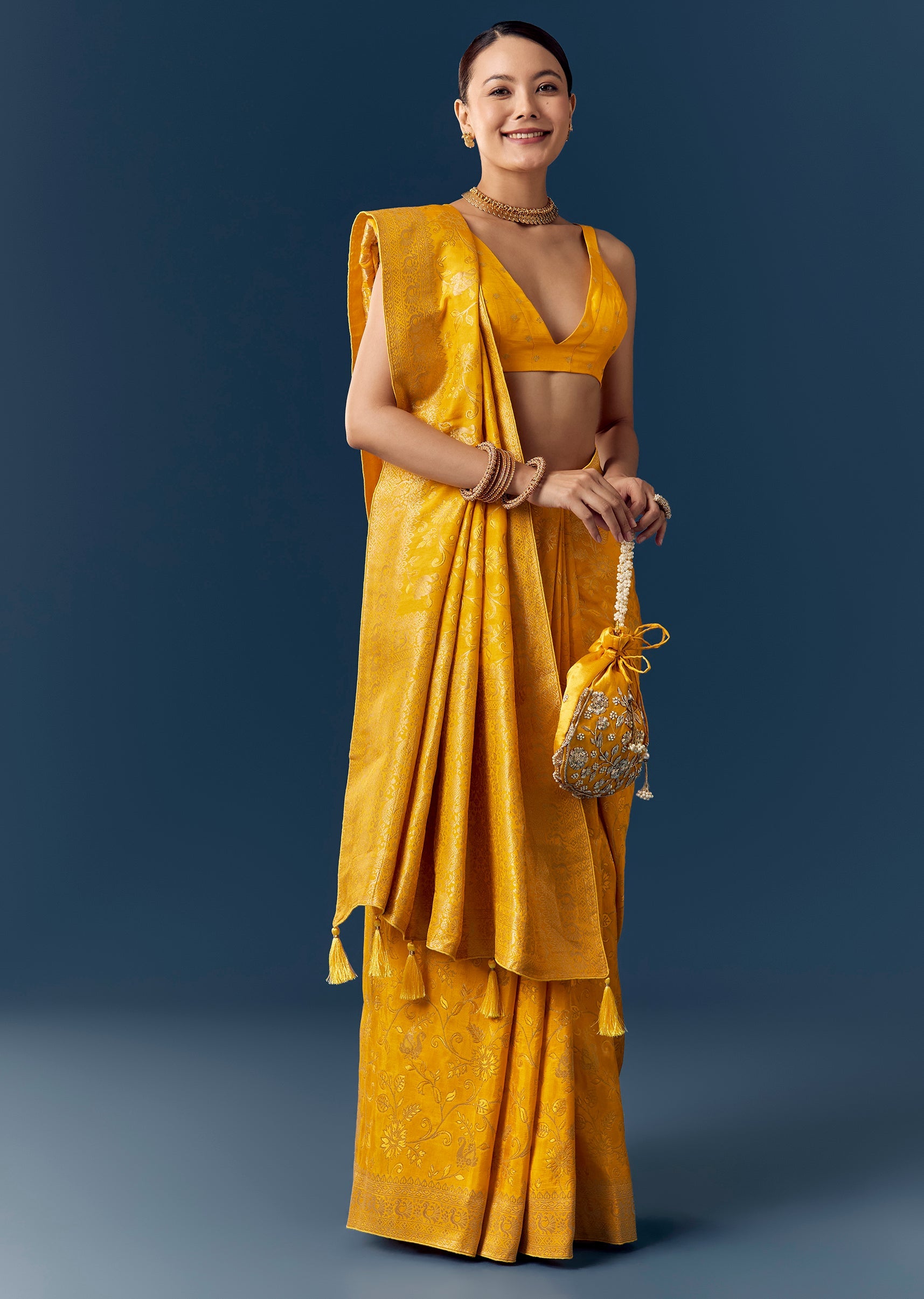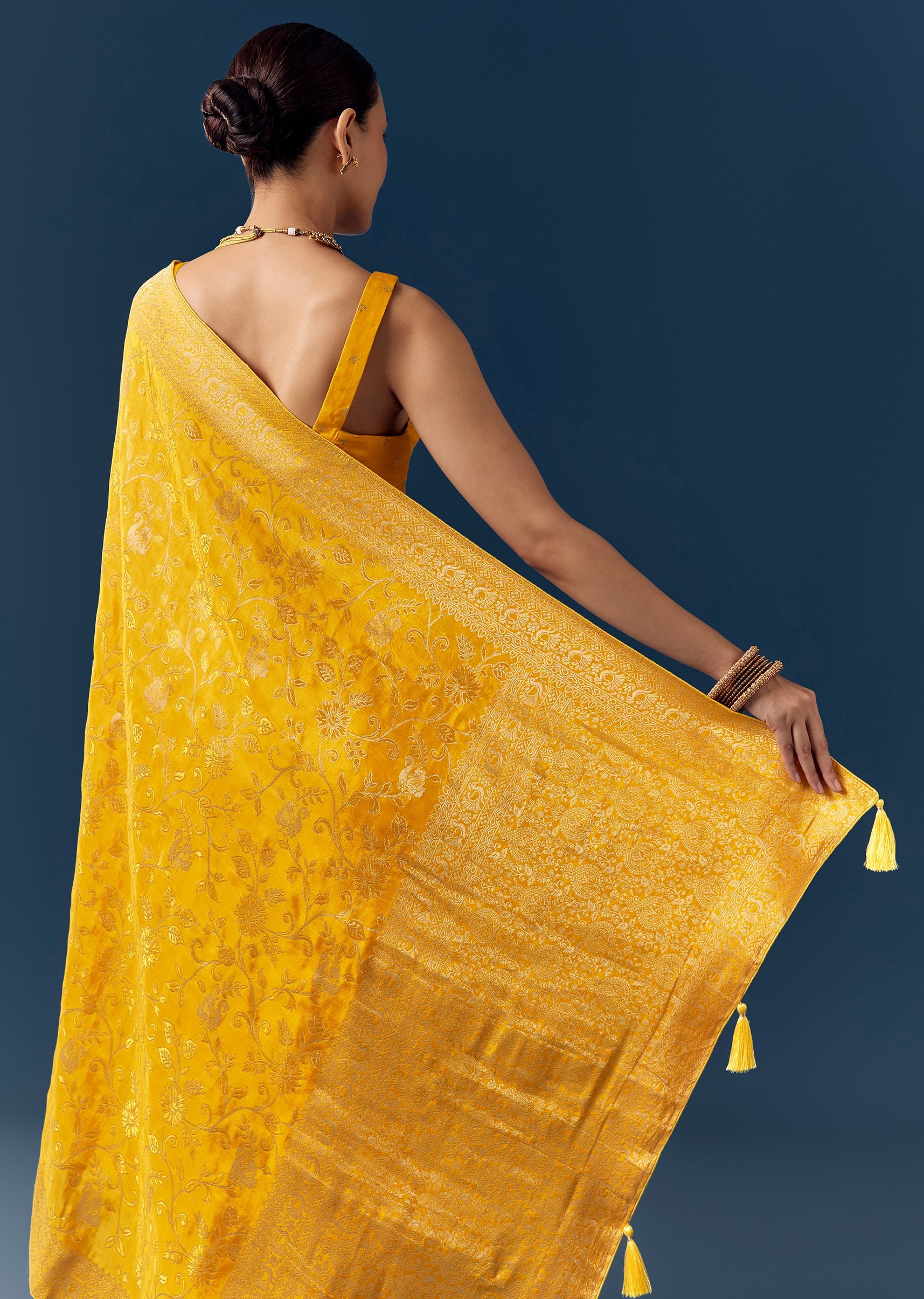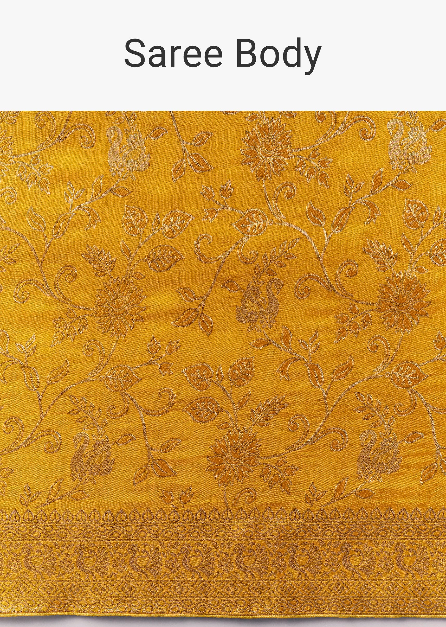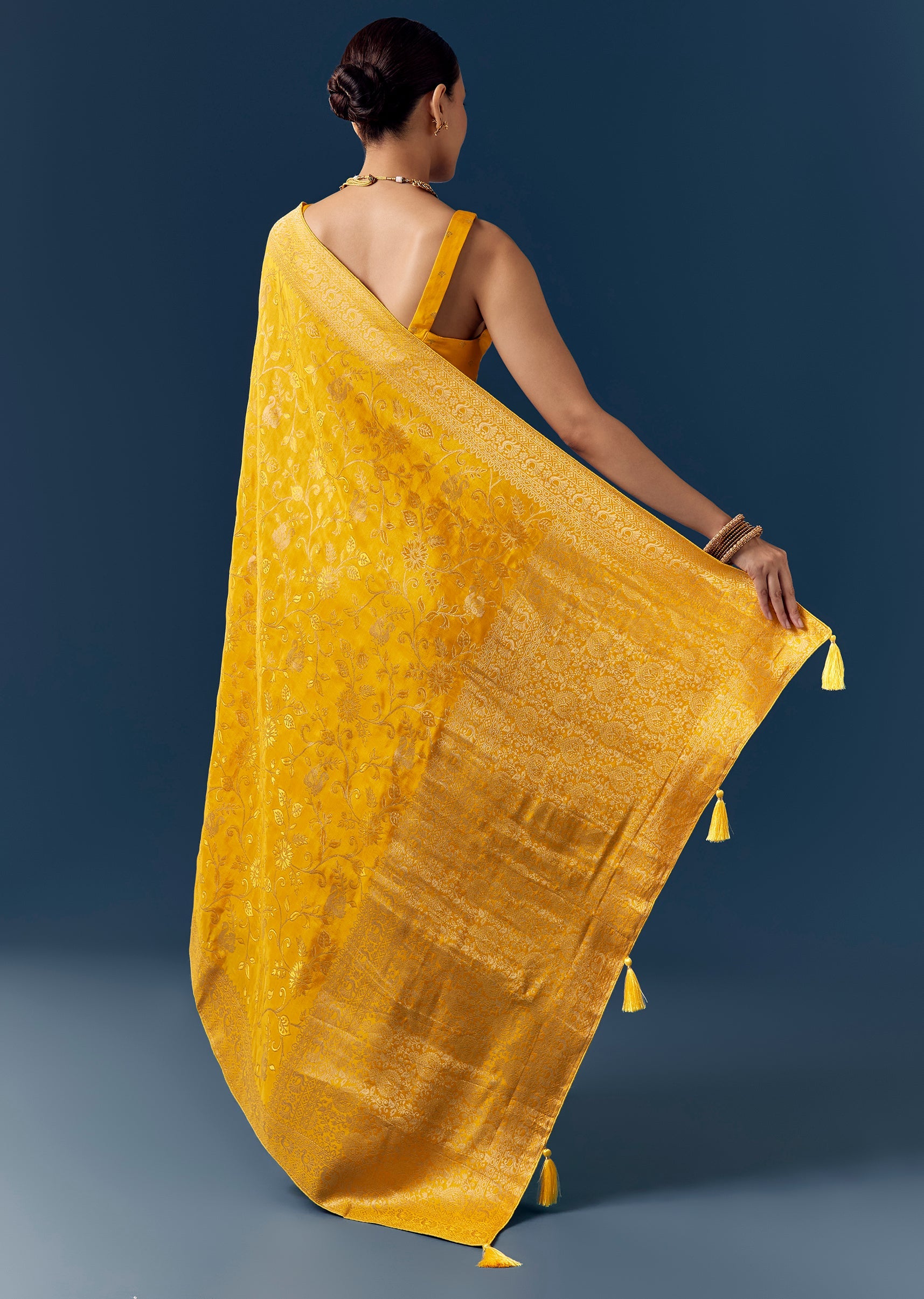 Yellow Dola Silk Saree with Floral Jaal Weave