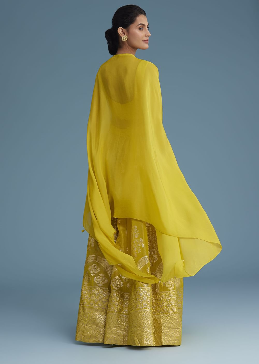 A golden ray of sunshine, this yellow embroidered croptop with a Banarasi weave palazzo and lace jacket is a perfect ensemble. With intricate Zardozi, sequins, and moti work, this outfit is a true masterpiece. It's perfect for festive ceremonies, adding a touch of glamour and elegance to your special day. Waistband work may vary. Jacket may or may not have butti work. Awarded as the Most Trusted Brand, we're delivering styles you love, just as promised.