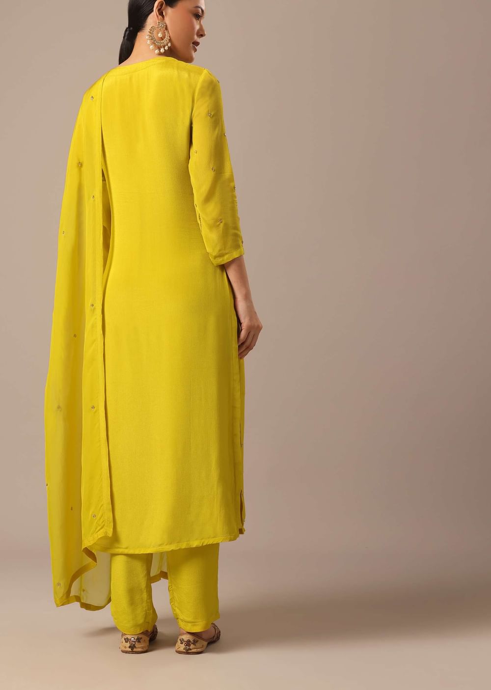 Yellow Embroidered Kurta Set With Organza Dupatta