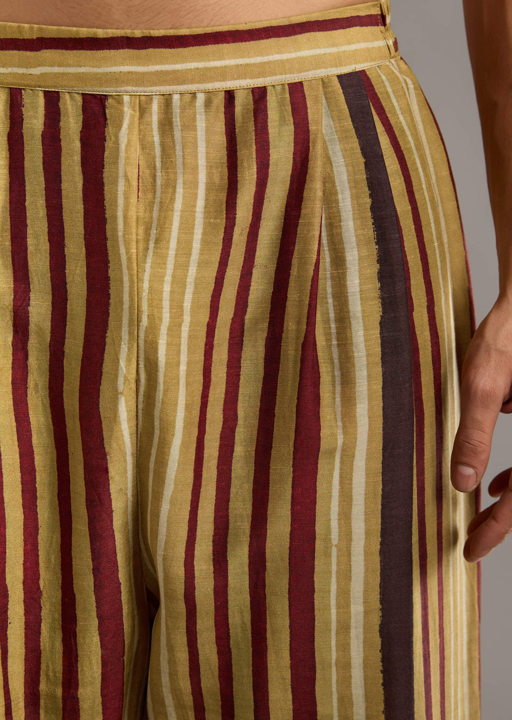 Yellow Linen Kurta Jacket Set For Men With Hand Block Ajrakh Print
